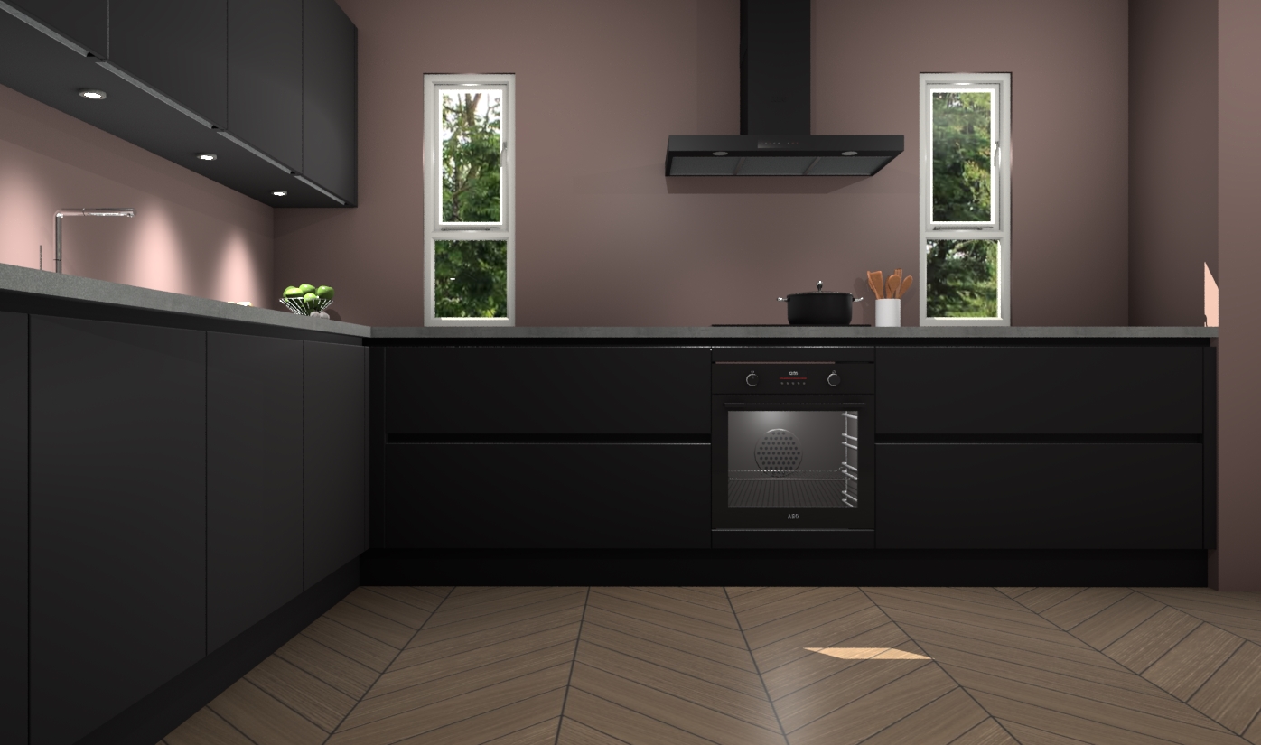 De zwarte greeploze keuken is een ideale hoekkeuken en heeft alle functies en apparatuur die u maar nodig kunt hebben. Bij de bestelling krijgt u een oven, inductiekookplaat, afzuigkap, vaatwasser en koelkast - deze kunnen desgewenst eenvoudig worden uitgebreid naar AEG na bestellen. Elke kast wordt ook voor gemonteerd geleverd met soft close deuren die jarenlang gebruik beloven. Stelt u zich voor dat u geen gedoe heeft met vervelende montage - vanaf het moment dat u uw bestelling plaats, duurt het slechts 7 weken voor het bij u thuis geleverd wordt.