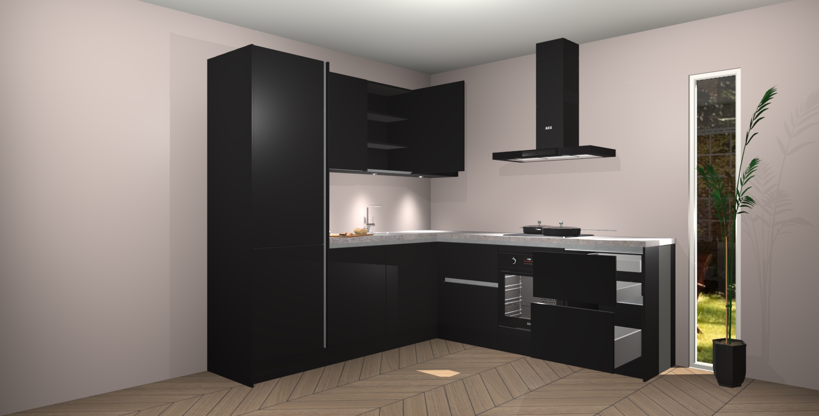 Inclusief plinten, stelpoten en werkblad