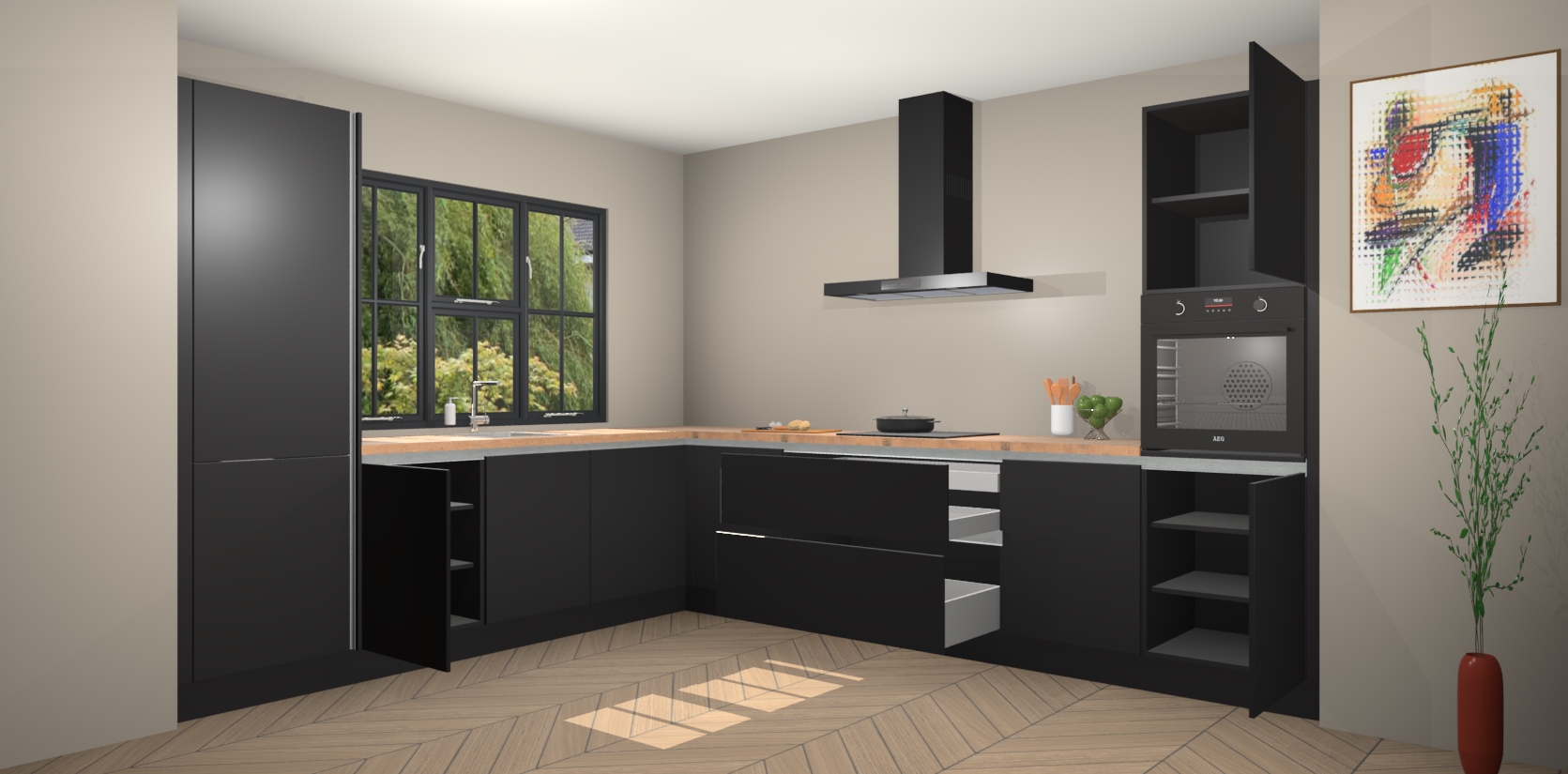 Inclusief plinten, stelpoten en werkblad
