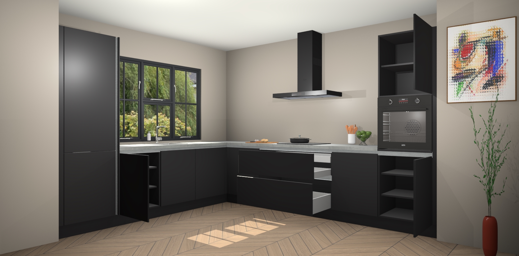 Inclusief plinten, stelpoten en werkblad