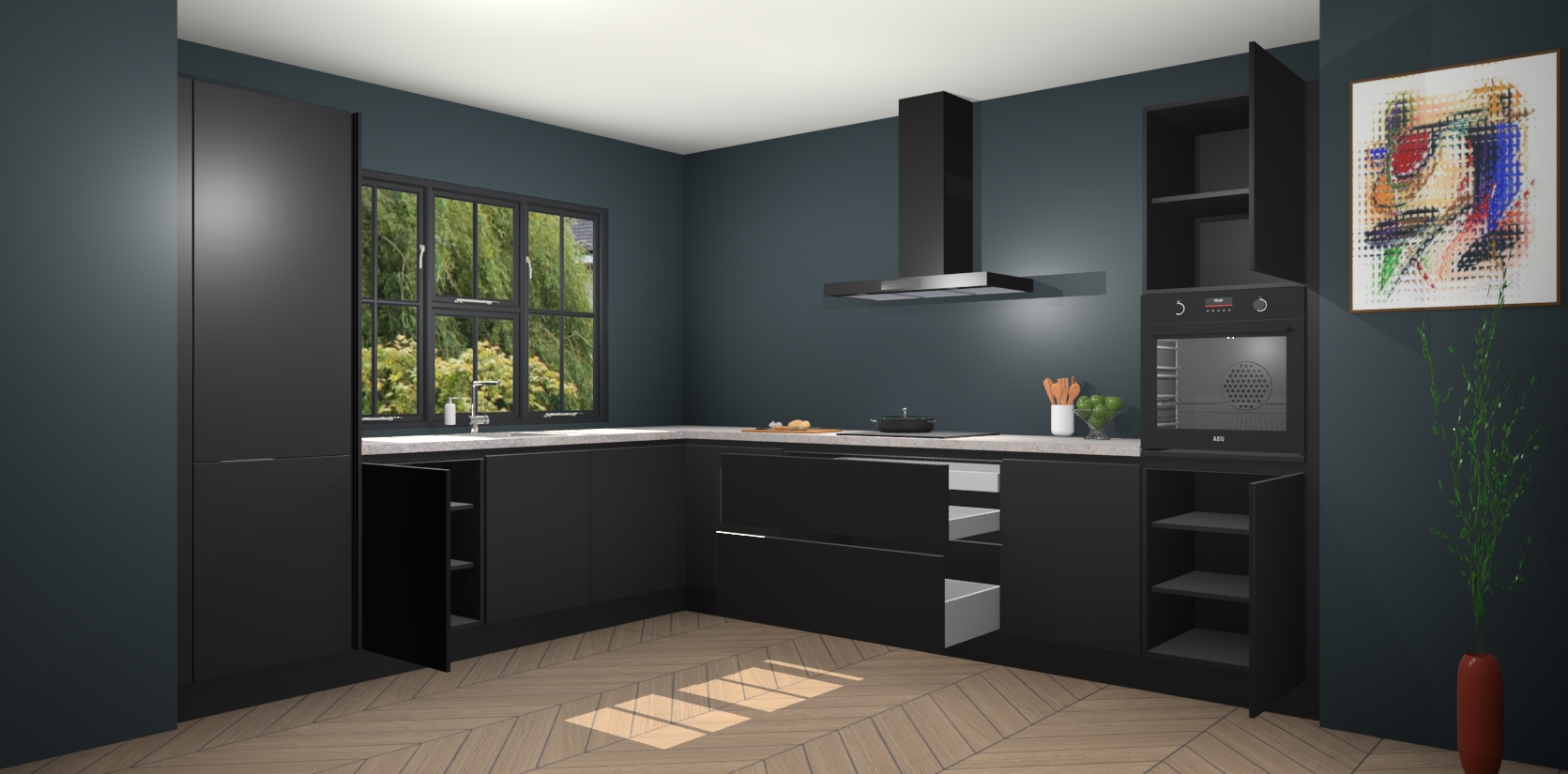 In deze box zijn alle kleuren verzameld van de deuren en werkbladen. Vraag de gratis kleurenbox aan en kijk thuis rustig verder!
