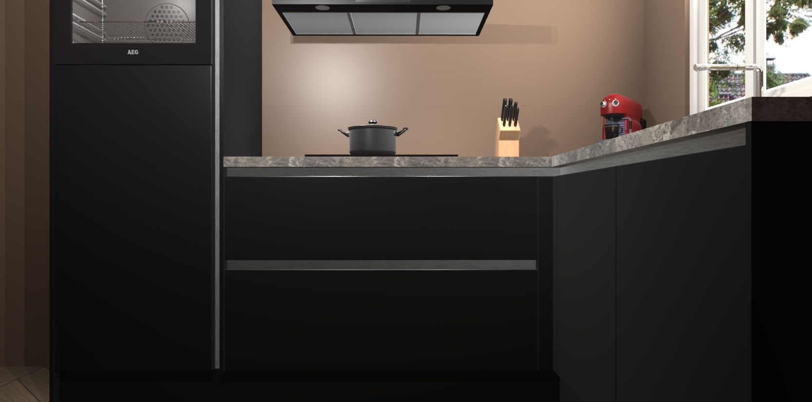 Dit model biedt u voldoende opbergruimte en vijf ingebouwde apparaten: een oven, inductiekookplaat, afzuigkap, vaatwasser en koelkast. Deze apparaten kunnen gemakkelijk worden geüpgrade naar AEG nadat u besteld heeft. De verschillende laden en kastjes bevatten softclose-deuren waardoor ze gezellig dichtvallen met een geruststellend helemaal geruisloos geluid. En dat is nog niet alles! We garanderen ook dat de prijs altijd laag blijft - dus haal nu uw Zwarte greeploze keuken Victoria terwijl het kan.