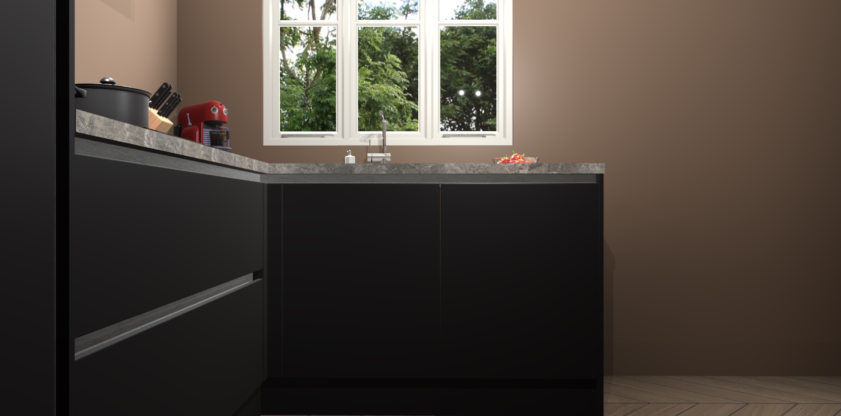 Bestellen was nog nooit zo makkelijk en we leveren met slechts 7 weken; zodra de keuken arriveert staan de kasten voor gemonteerd klaar om er alles aan te doen dat u hem gemakkelijk zelf kunt installeren! Eén ding is zeker: met de Zwarte greeploze keuken Victoria slaagt u erin modischer, modernere keukens uit te rusten die tientallen jaren meegaan! Haal snel uw Zwarte greeploze keuken Victoria - of u nu net begint of al 'levenservaring' hebt in de keukendroomloopbaan - want dit topmodel van onze collectie wilt u absoluut niet missen.