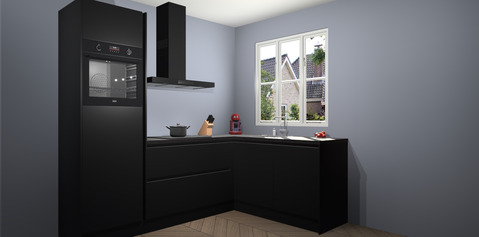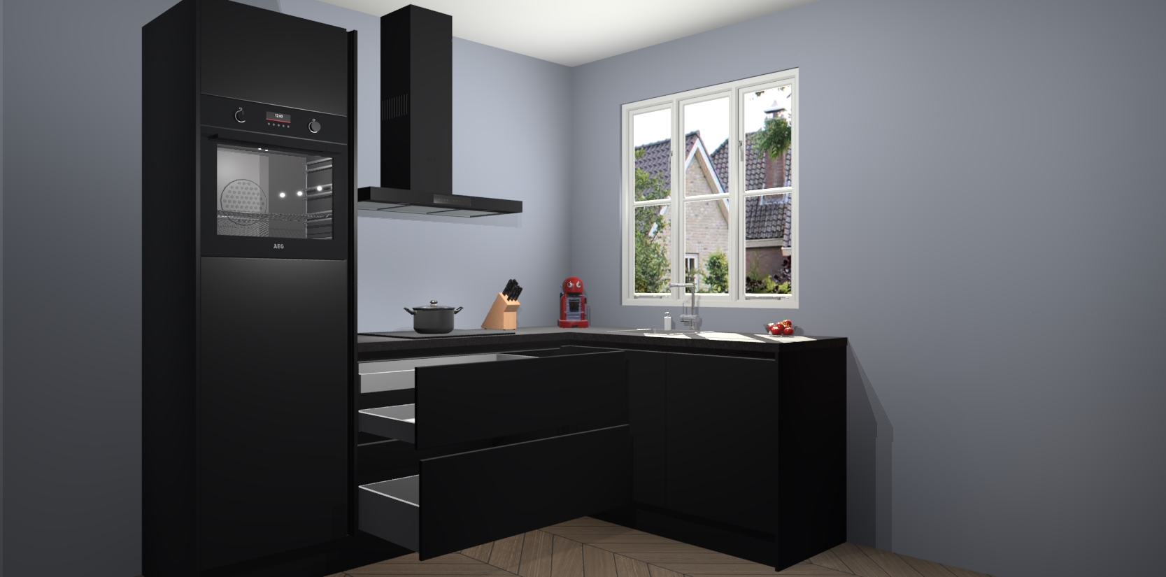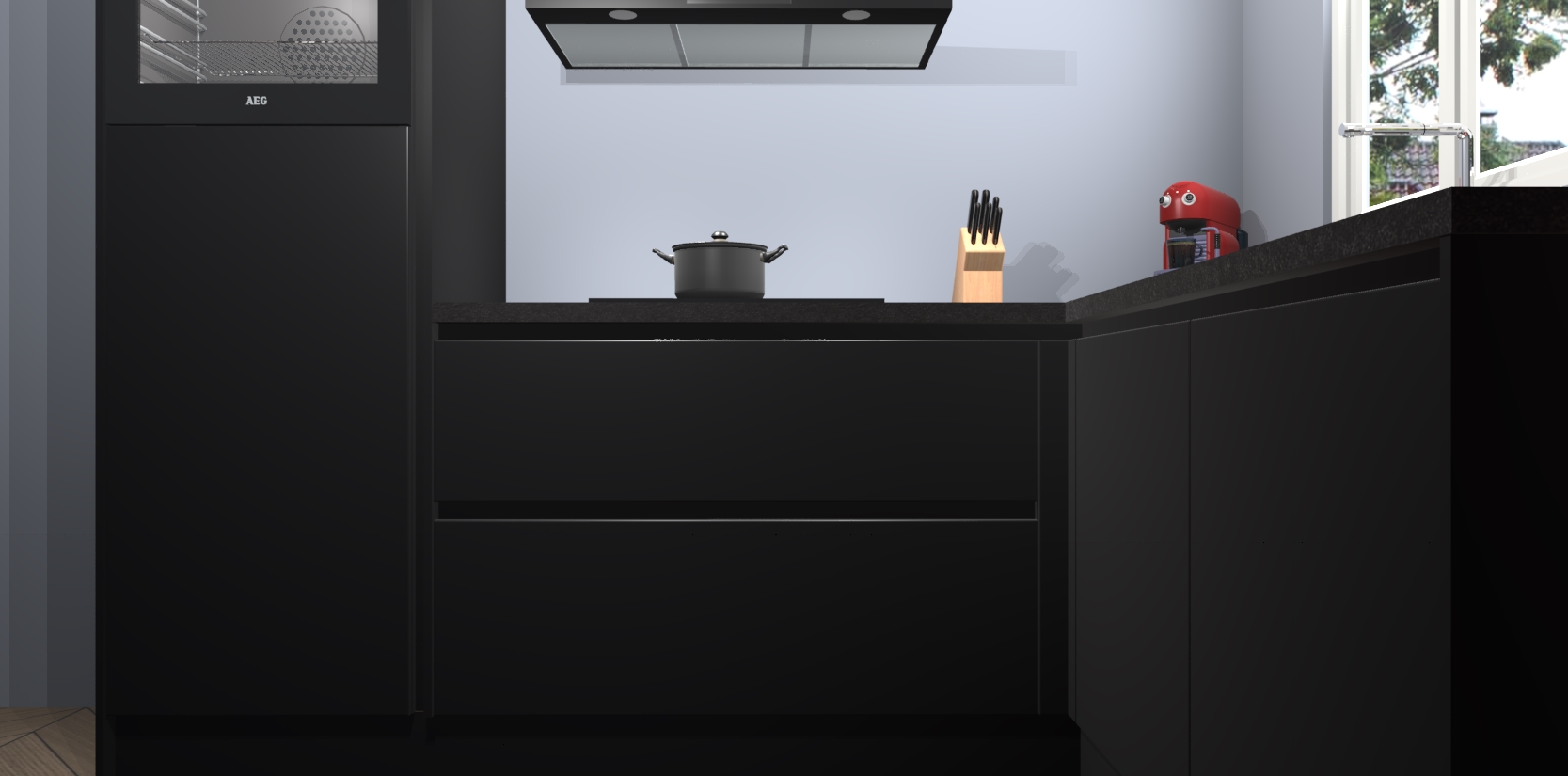 Dit model biedt u voldoende opbergruimte en vijf ingebouwde apparaten: een oven, inductiekookplaat, afzuigkap, vaatwasser en koelkast. Deze apparaten kunnen gemakkelijk worden geüpgrade naar AEG nadat u besteld heeft. De verschillende laden en kastjes bevatten softclose-deuren waardoor ze gezellig dichtvallen met een geruststellend helemaal geruisloos geluid. En dat is nog niet alles! We garanderen ook dat de prijs altijd laag blijft - dus haal nu uw Zwarte greeploze keuken Victoria terwijl het kan.