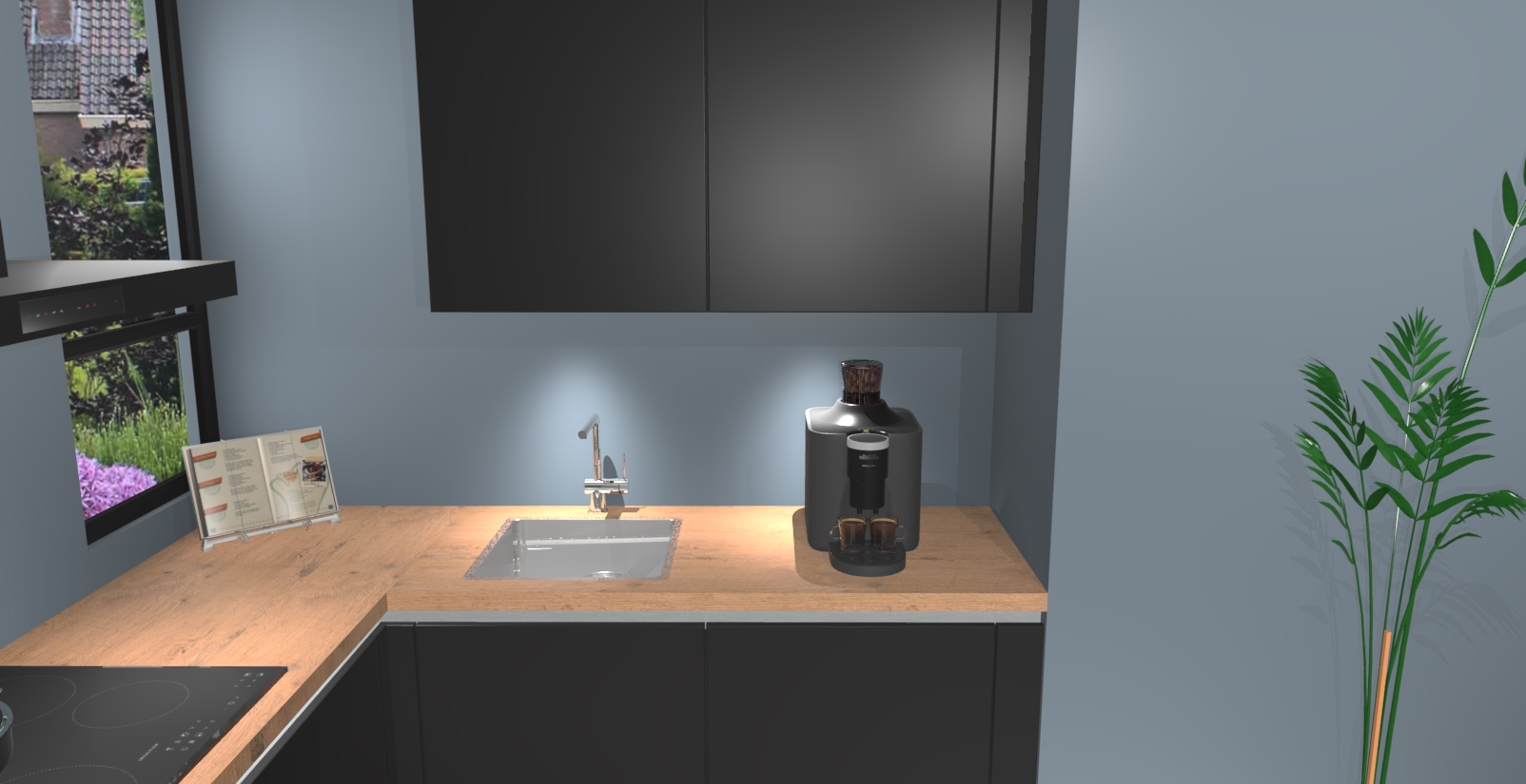 - De spoelbak is nog niet in gevreesd. Dit dient tijdens het werk gedaan te worden