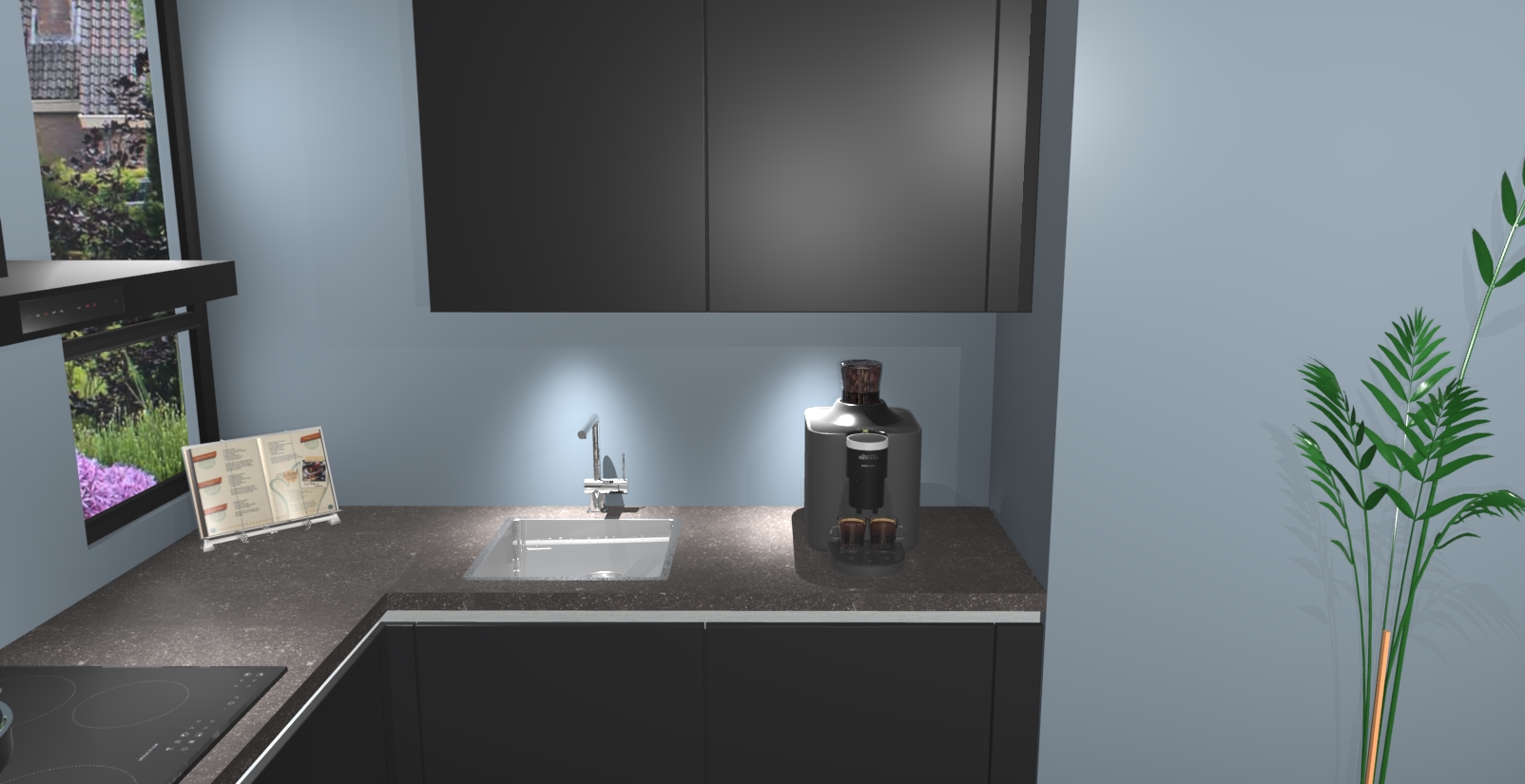 - De spoelbak is nog niet in gevreesd. Dit dient tijdens het werk gedaan te worden