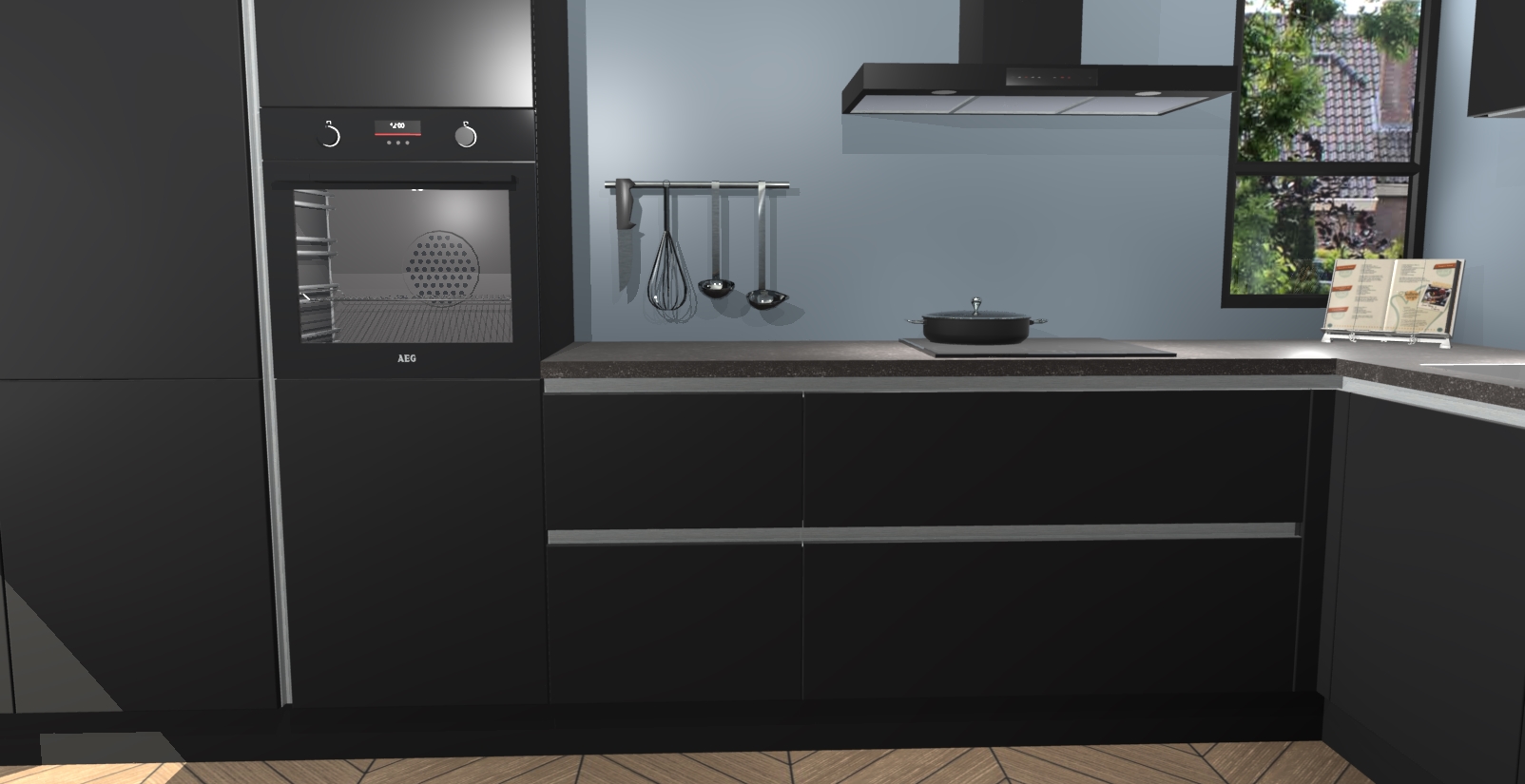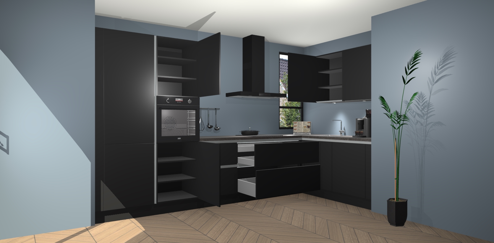 Welkom in uw nieuwe moderne keuken! Laat ons u voorstellen aan de Zwarte greeploze keuken Vlaanderen . Deze prachtige hoekkeuken straalt exclusiviteit en luxe uit als geen ander. Het strakke design, de tijdloze kleuren en het greeploze model maken van deze keuken een moderne klassieker. En met voldoende opbergruimte heeft deze keuken echt voor ieder wat wils.