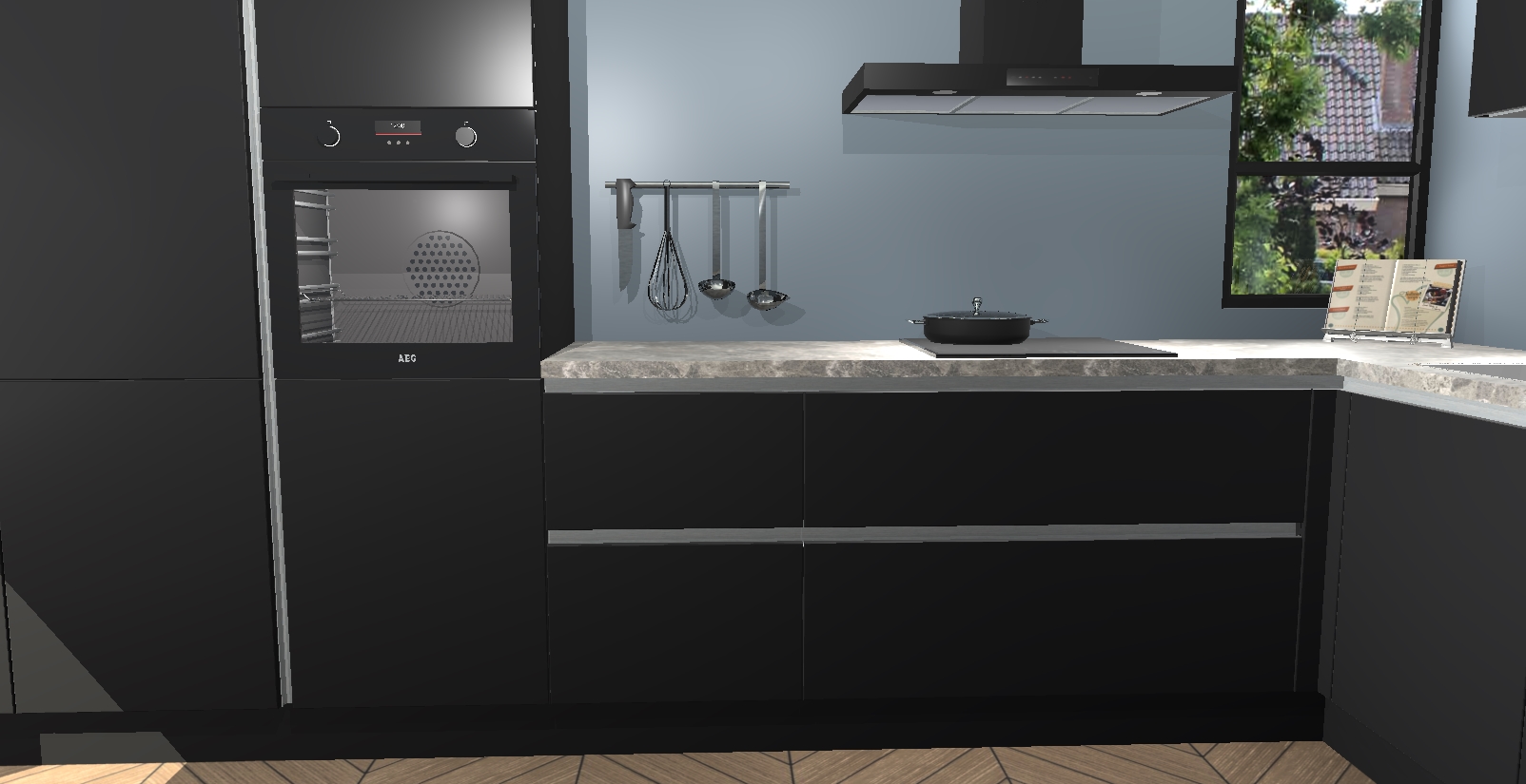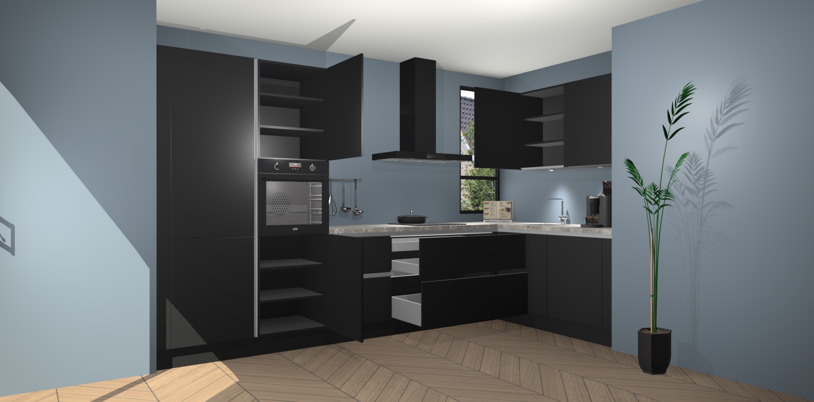 Welkom in uw nieuwe moderne keuken! Laat ons u voorstellen aan de Zwarte greeploze keuken Vlaanderen . Deze prachtige hoekkeuken straalt exclusiviteit en luxe uit als geen ander. Het strakke design, de tijdloze kleuren en het greeploze model maken van deze keuken een moderne klassieker. En met voldoende opbergruimte heeft deze keuken echt voor ieder wat wils.