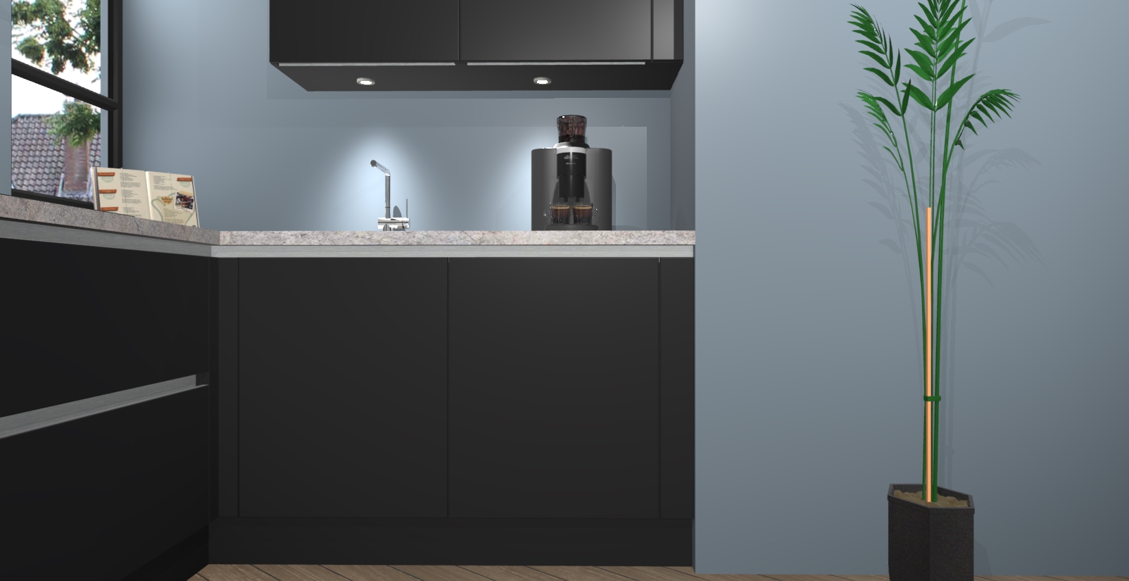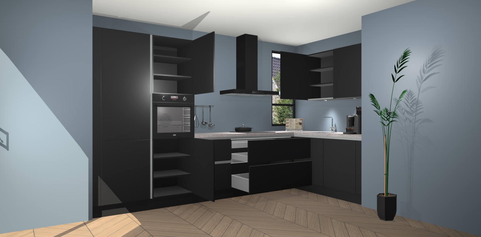 Welkom in uw nieuwe moderne keuken! Laat ons u voorstellen aan de Zwarte greeploze keuken Vlaanderen . Deze prachtige hoekkeuken straalt exclusiviteit en luxe uit als geen ander. Het strakke design, de tijdloze kleuren en het greeploze model maken van deze keuken een moderne klassieker. En met voldoende opbergruimte heeft deze keuken echt voor ieder wat wils.