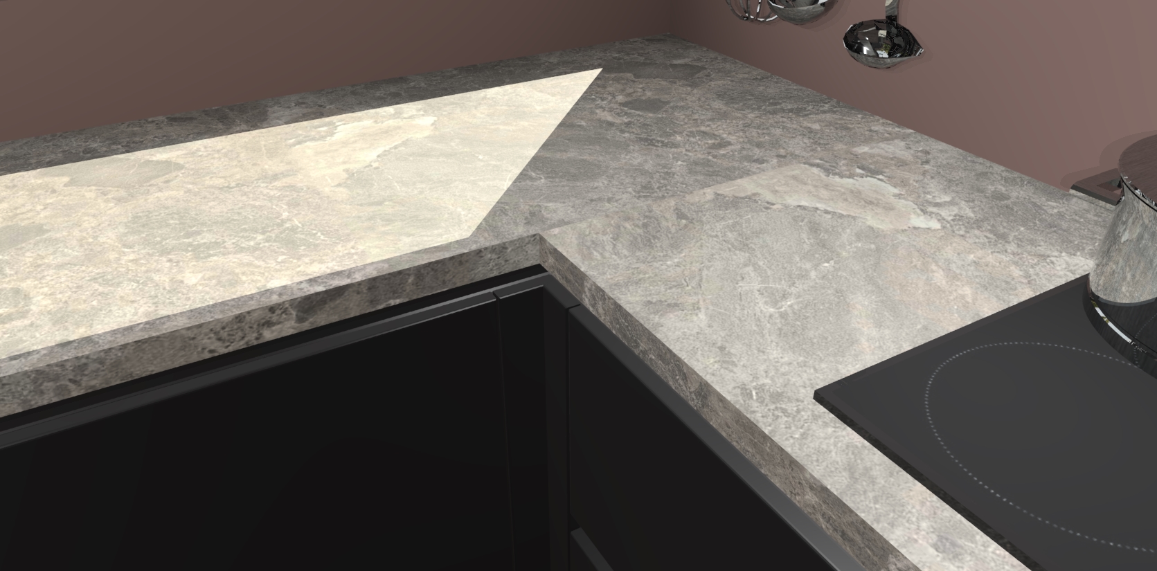 - Bij een hoekwerkblad zijn de hoeken in gevreesd en op maat gemaakt