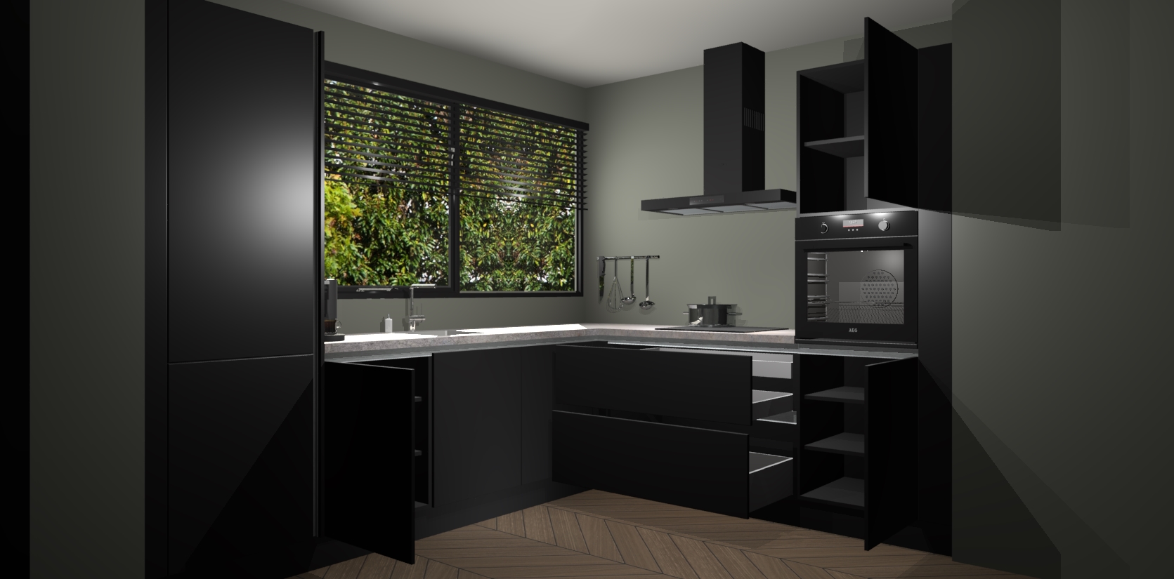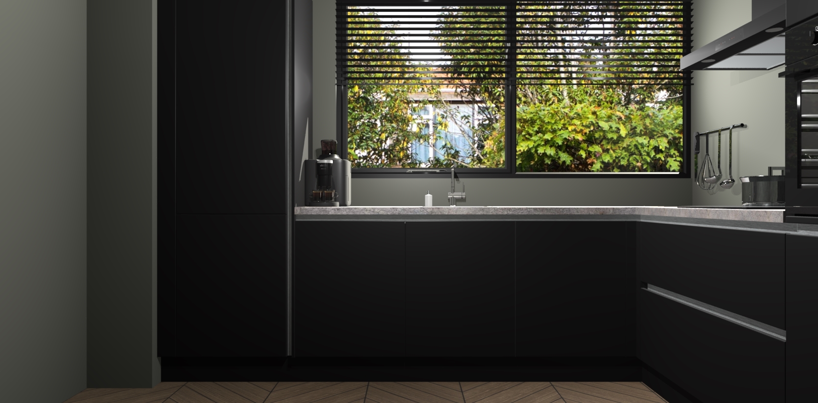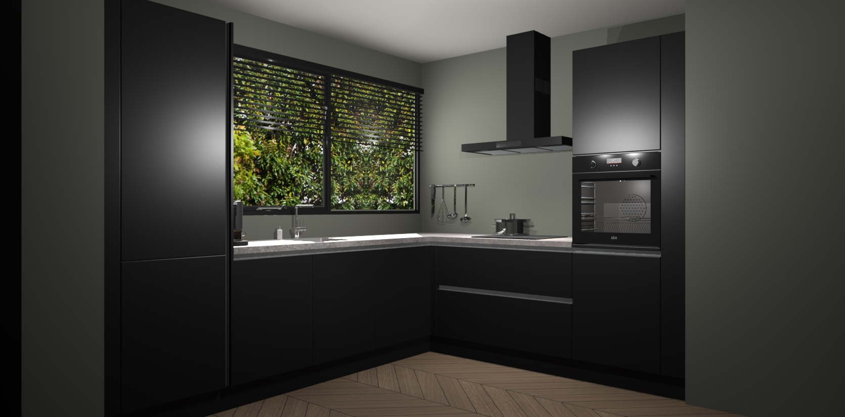 Wij presenteren de revolutie in keukens: de zwarte greeploze keuken Vogar. Met modern design, een tijdloos uiterlijk en kasten die al voor gemonteerd worden geleverd, laat deze stijlvolle keuken uw kookervaring op een hele nieuwe manier transformeren.
