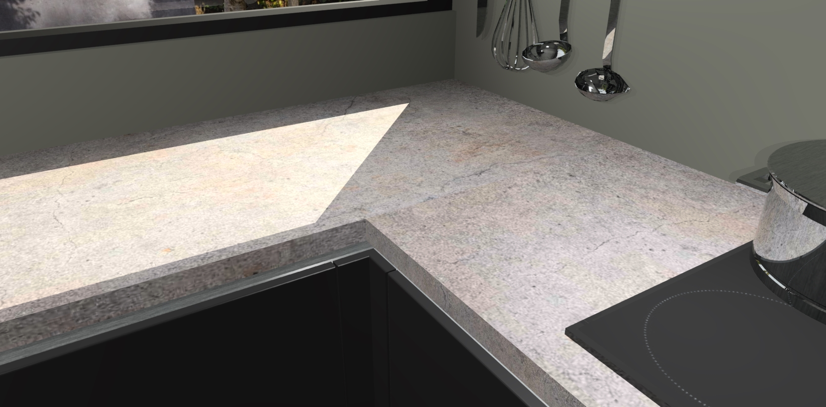 - Bij een hoekwerkblad zijn de hoeken in gevreesd en op maat gemaakt