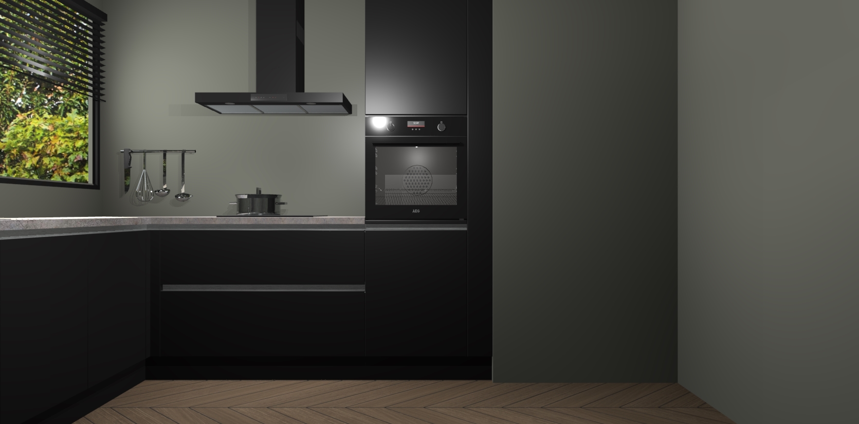 Met een modern, tijdloos design en ruime opslagruimte, zult u zich in no-time thuis voelen in uw nieuwe keuken. Uw leven wordt eenvoudiger met de soft-close deuren die voor het ultieme stille comfort zorgen - geen geluid dat u stoort terwijl u kookt. Ook is de keuken voorzien van 5 ingebouwde apparaten: een oven, inductie kookplaat, afzuigkap, vaatwasser en koelkast. Deze kunnen gemakkelijk na bestelling worden bijgewerkt naar AEG - waardoor uw luxe ervaring compleet is.