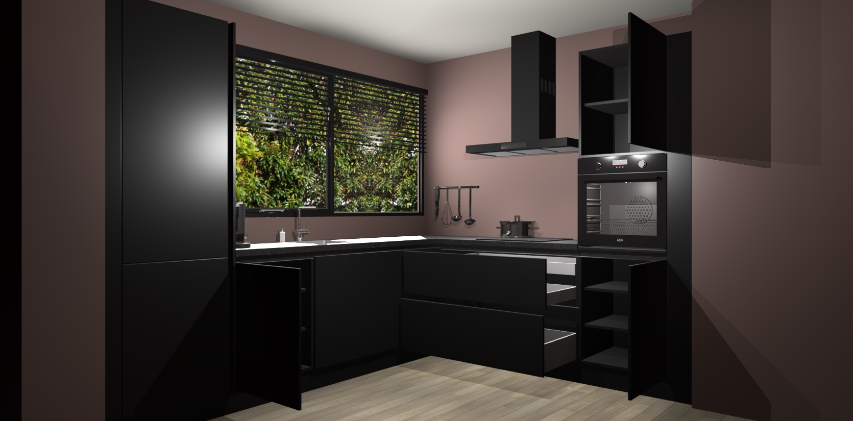 Met een modern, tijdloos design en ruime opslagruimte, zult u zich in no-time thuis voelen in uw nieuwe keuken. Uw leven wordt eenvoudiger met de soft-close deuren die voor het ultieme stille comfort zorgen - geen geluid dat u stoort terwijl u kookt. Ook is de keuken voorzien van 5 ingebouwde apparaten: een oven, inductie kookplaat, afzuigkap, vaatwasser en koelkast. Deze kunnen gemakkelijk na bestelling worden bijgewerkt naar AEG - waardoor uw luxe ervaring compleet is.