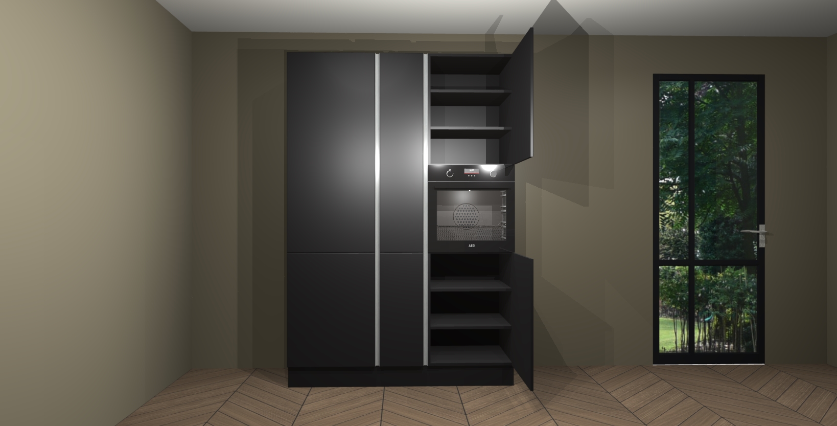 Met een modern, tijdloos design en ruime opslagruimte, zult u zich in no-time thuis voelen in uw nieuwe keuken. Uw leven wordt eenvoudiger met de soft-close deuren die voor het ultieme stille comfort zorgen - geen geluid dat u stoort terwijl u kookt. Ook is de keuken voorzien van 5 ingebouwde apparaten: een oven, inductie kookplaat, afzuigkap, vaatwasser en koelkast. Deze kunnen gemakkelijk na bestelling worden bijgewerkt naar AEG - waardoor uw luxe ervaring compleet is.