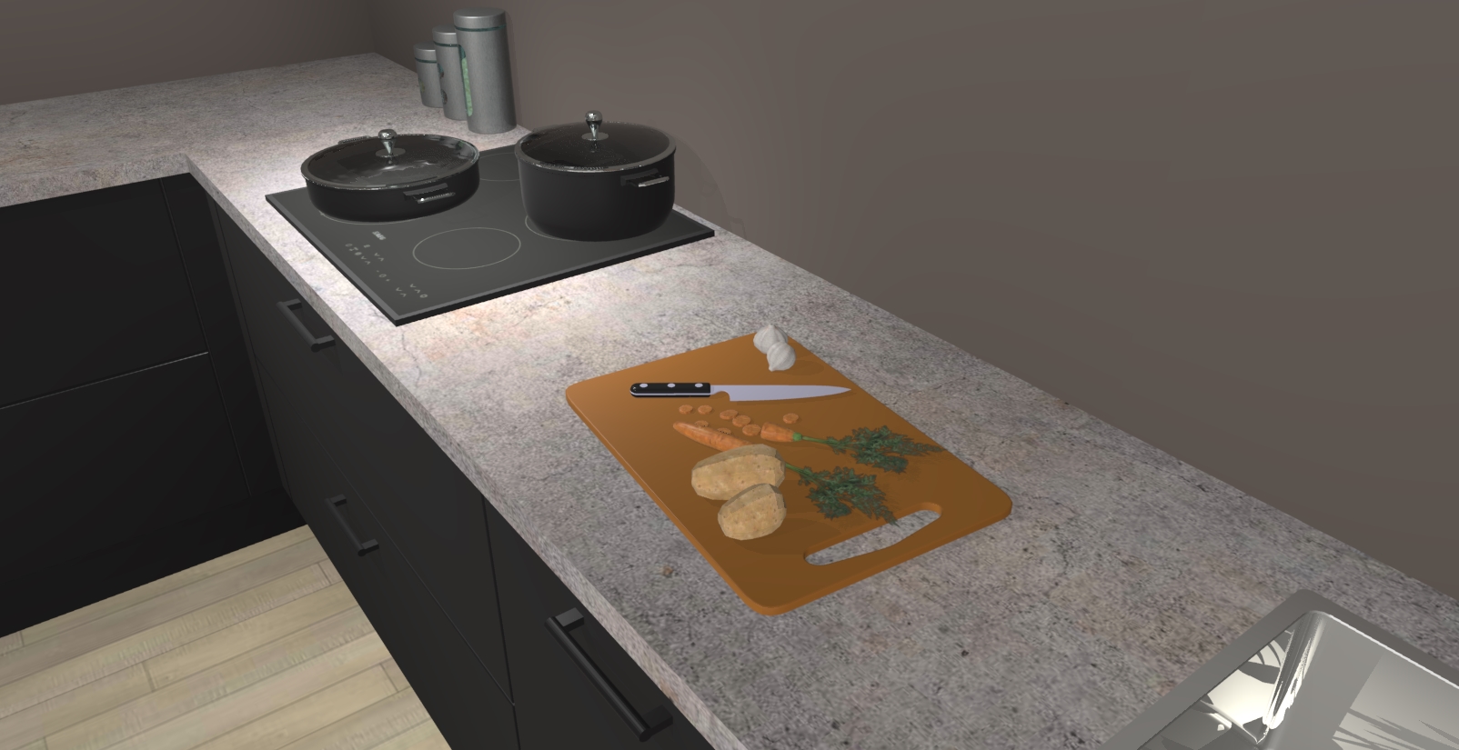 Inclusief plinten, stelpoten en werkblad