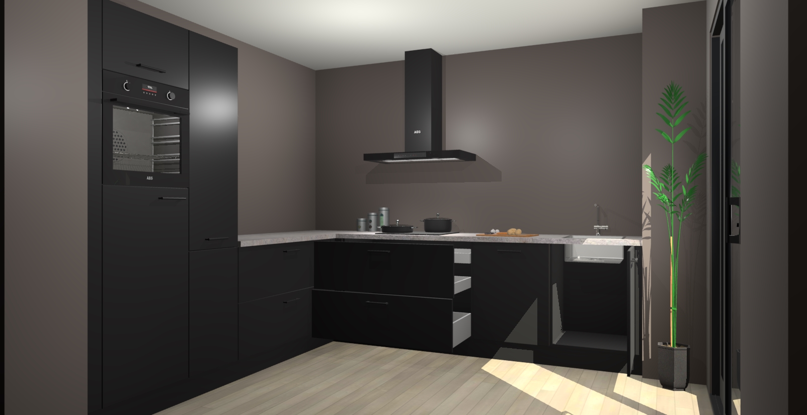 Laat u verrassen door de nieuwste en meest innovatieve keuken van dit moment: De Zwarte keuken Antibes. Deze chique keuken straalt een stijlvolle sfeer uit die zeker bewondering zal oogsten bij uw gasten. Als u op zoek bent naar voldoende opbergruimte voor al uw keukengadgets en -gerei, dan is dit de perfecte oplossing. Met ingebouwde apparatuur zoals een oven, inductiekookplaat, afzuigkap, vaatwasser en koelkast! U krijgt niet alleen veel opbergruimte, maar ook een betrouwbaar soft close-deursysteem dat ervoor zorgt dat er nooit meer kastdeuren dichtslaan!
