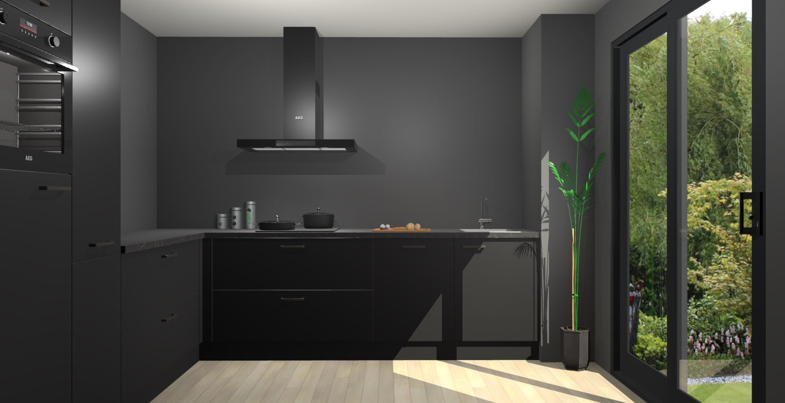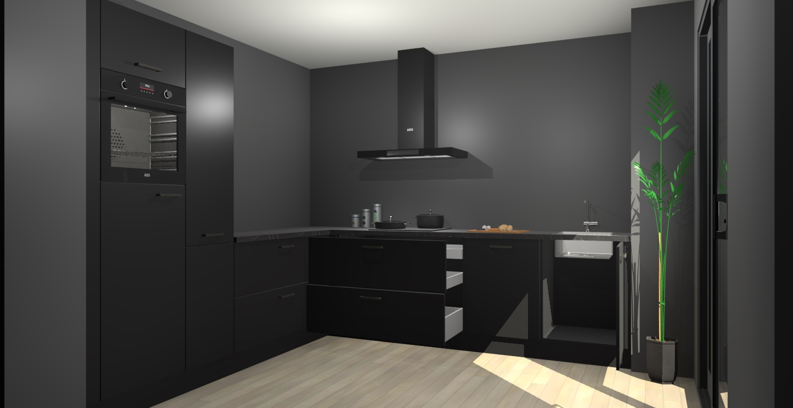 Laat u verrassen door de nieuwste en meest innovatieve keuken van dit moment: De Zwarte keuken Antibes. Deze chique keuken straalt een stijlvolle sfeer uit die zeker bewondering zal oogsten bij uw gasten. Als u op zoek bent naar voldoende opbergruimte voor al uw keukengadgets en -gerei, dan is dit de perfecte oplossing. Met ingebouwde apparatuur zoals een oven, inductiekookplaat, afzuigkap, vaatwasser en koelkast! U krijgt niet alleen veel opbergruimte, maar ook een betrouwbaar soft close-deursysteem dat ervoor zorgt dat er nooit meer kastdeuren dichtslaan!