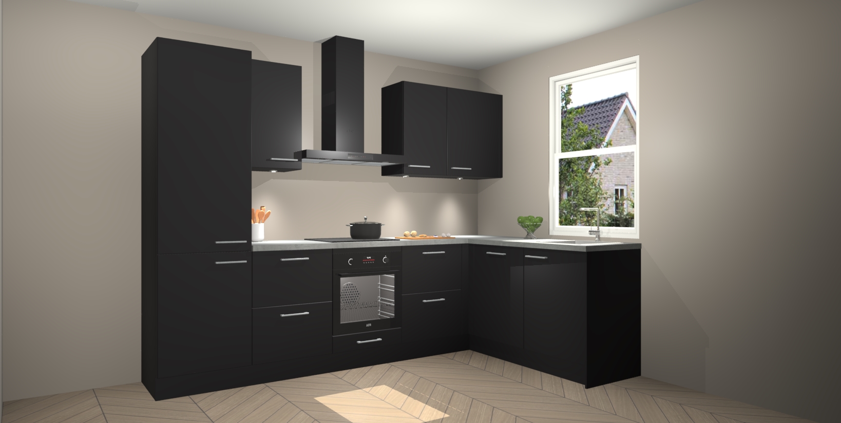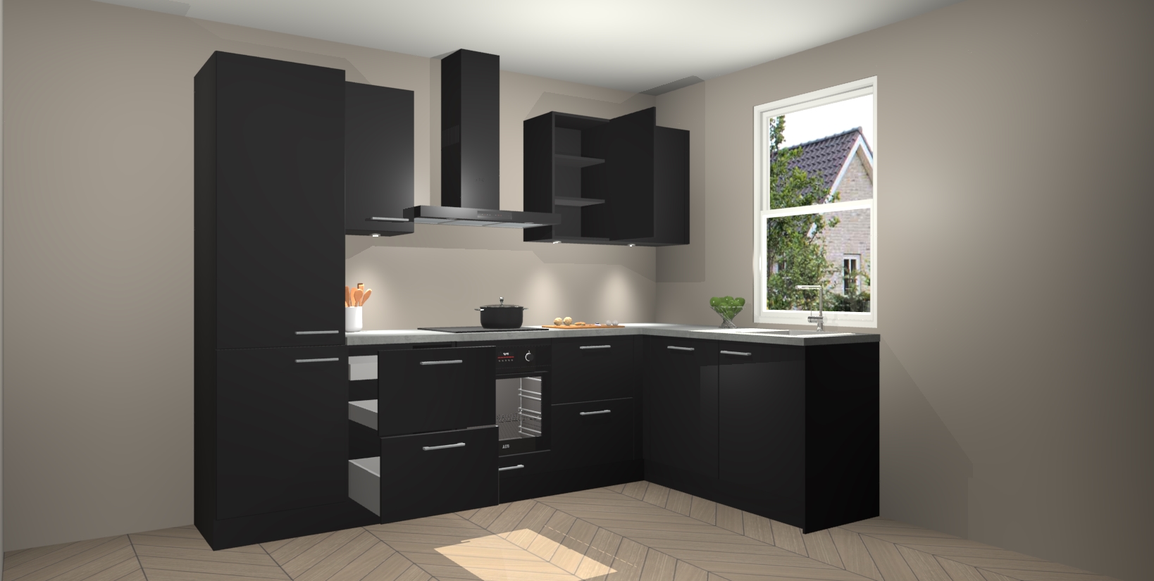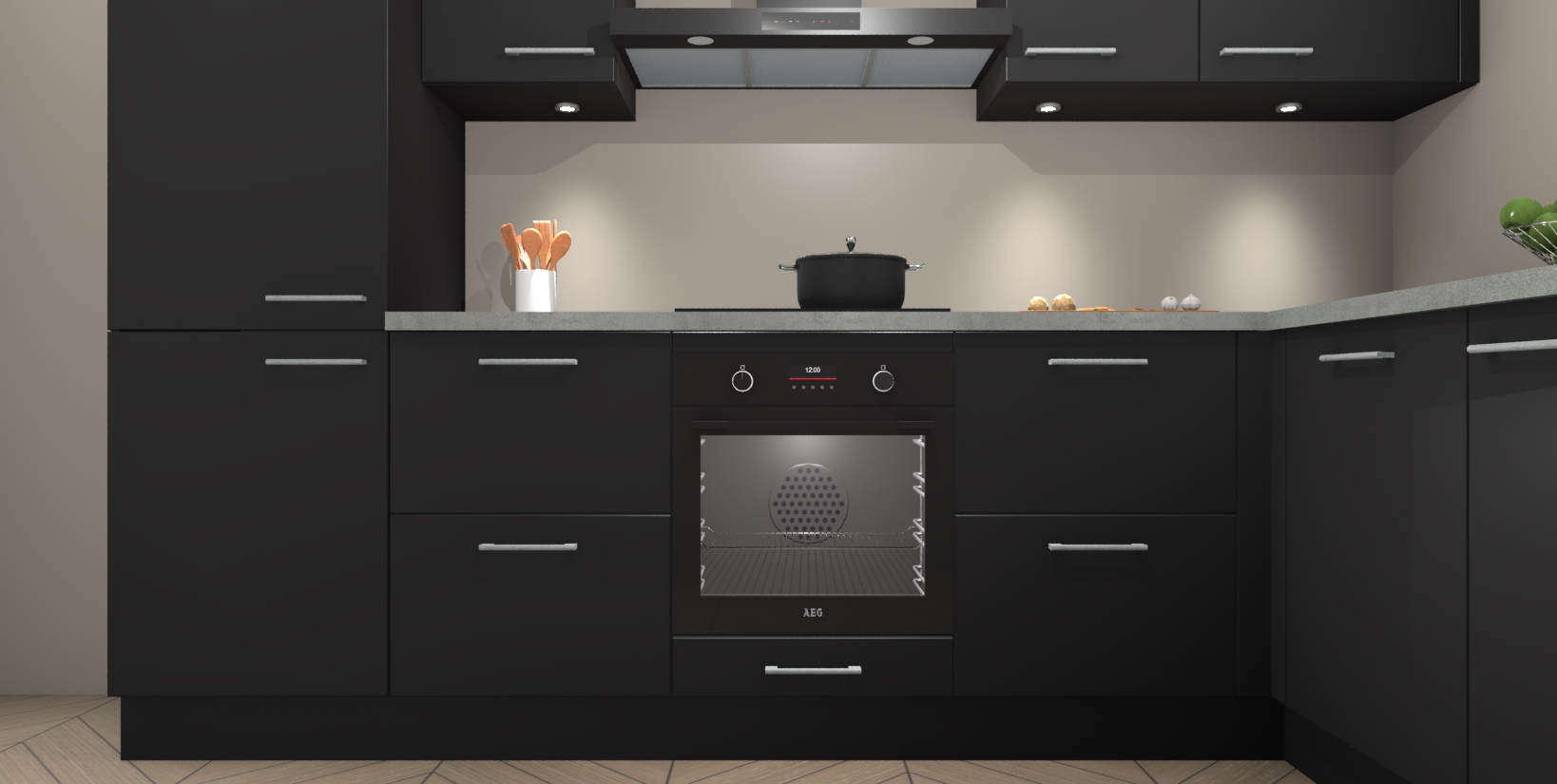 Maak kennis met de trendsettende en luxe Zwarte keuken Bazel! Deze uitzonderlijke keuken van Duitse kwaliteit is stijlvol, modern en perfect om elk huis mee op te fleuren. De binnenkant van de kasten worden meegenomen in een bijpassende kleur om een samenhangende eigentijdse esthetiek te voltooien. U zult dol zijn op hoe uw pas gerenoveerde keuken eruitziet met de Zwarte editie!