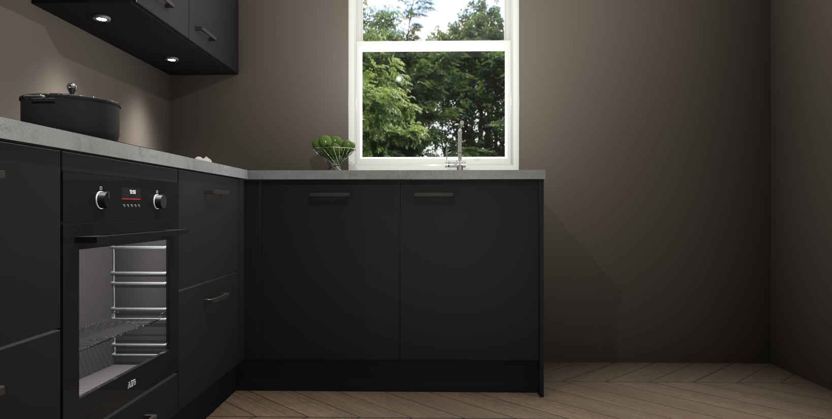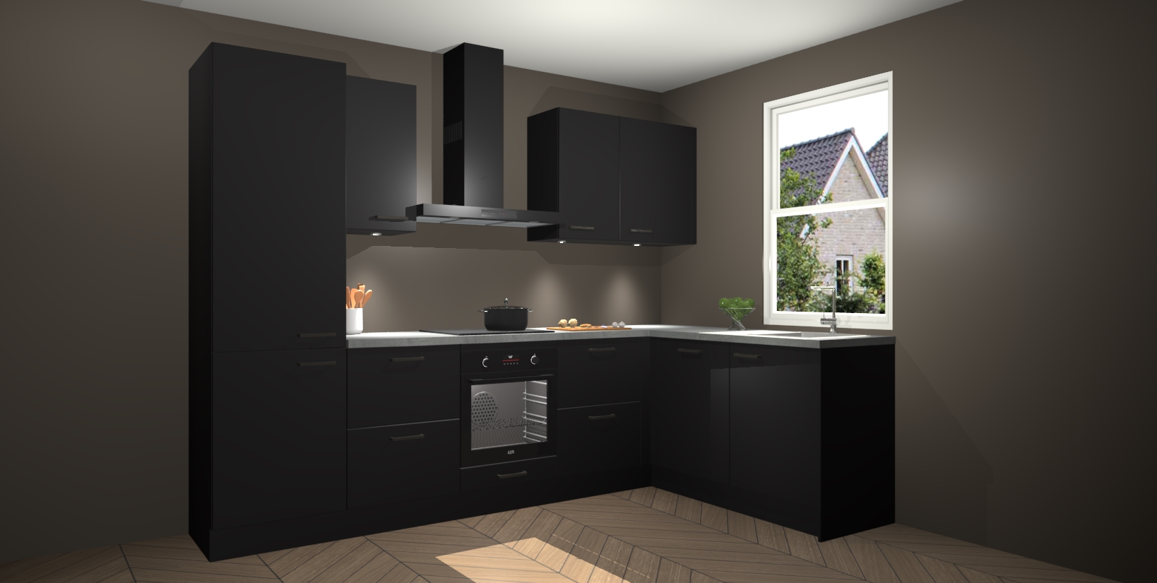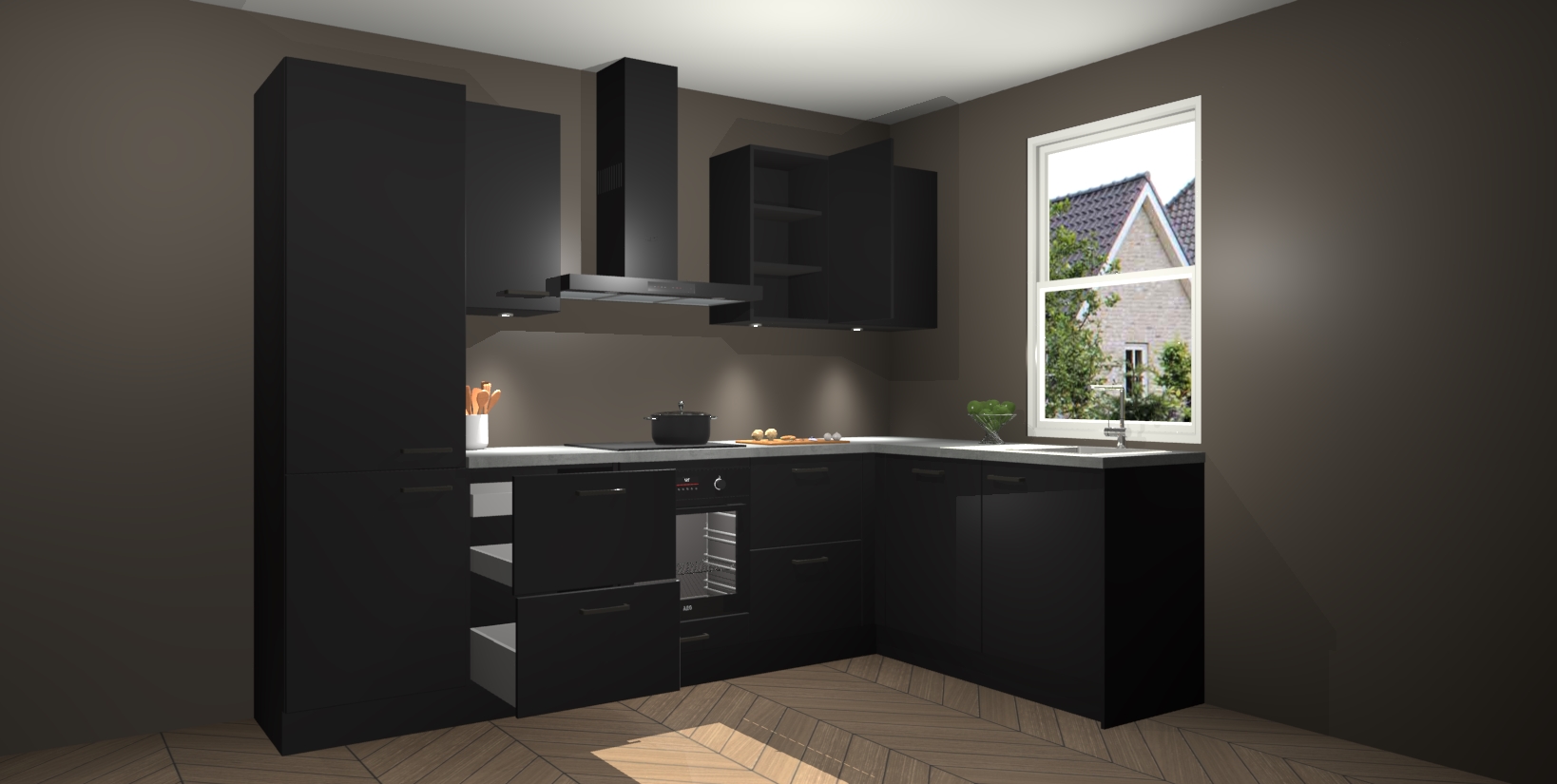 Maak kennis met de trendsettende en luxe Zwarte keuken Bazel! Deze uitzonderlijke keuken van Duitse kwaliteit is stijlvol, modern en perfect om elk huis mee op te fleuren. De binnenkant van de kasten worden meegenomen in een bijpassende kleur om een samenhangende eigentijdse esthetiek te voltooien. U zult dol zijn op hoe uw pas gerenoveerde keuken eruitziet met de Zwarte editie!