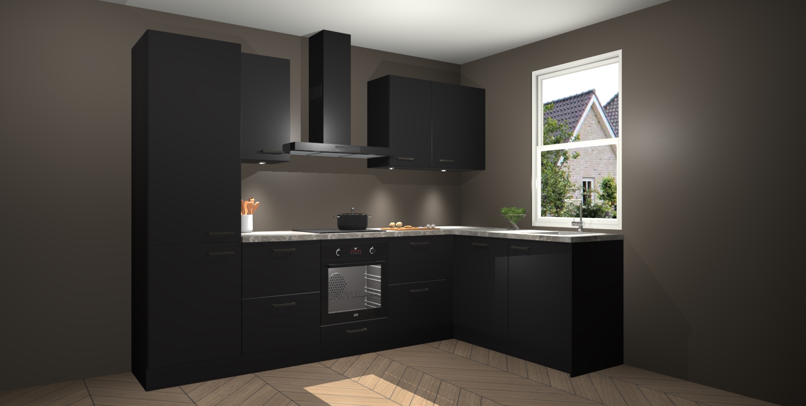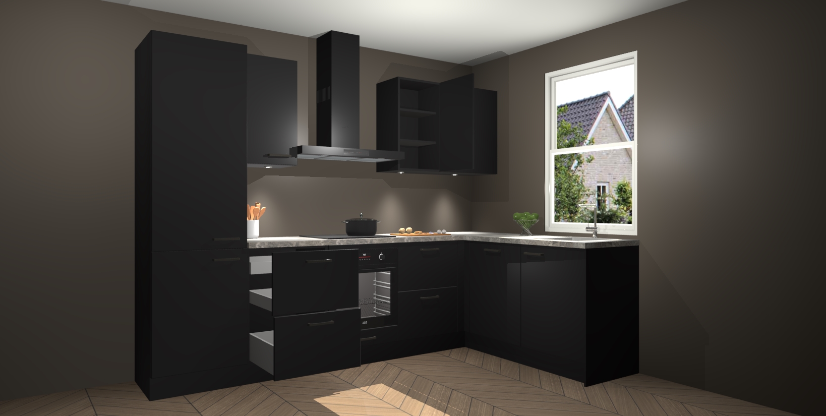 Maak kennis met de trendsettende en luxe Zwarte keuken Bazel! Deze uitzonderlijke keuken van Duitse kwaliteit is stijlvol, modern en perfect om elk huis mee op te fleuren. De binnenkant van de kasten worden meegenomen in een bijpassende kleur om een samenhangende eigentijdse esthetiek te voltooien. U zult dol zijn op hoe uw pas gerenoveerde keuken eruitziet met de Zwarte editie!