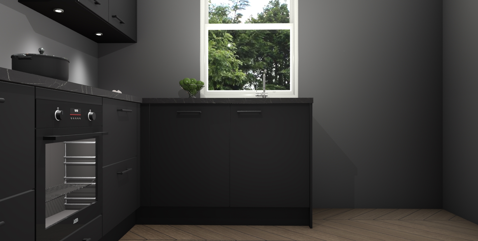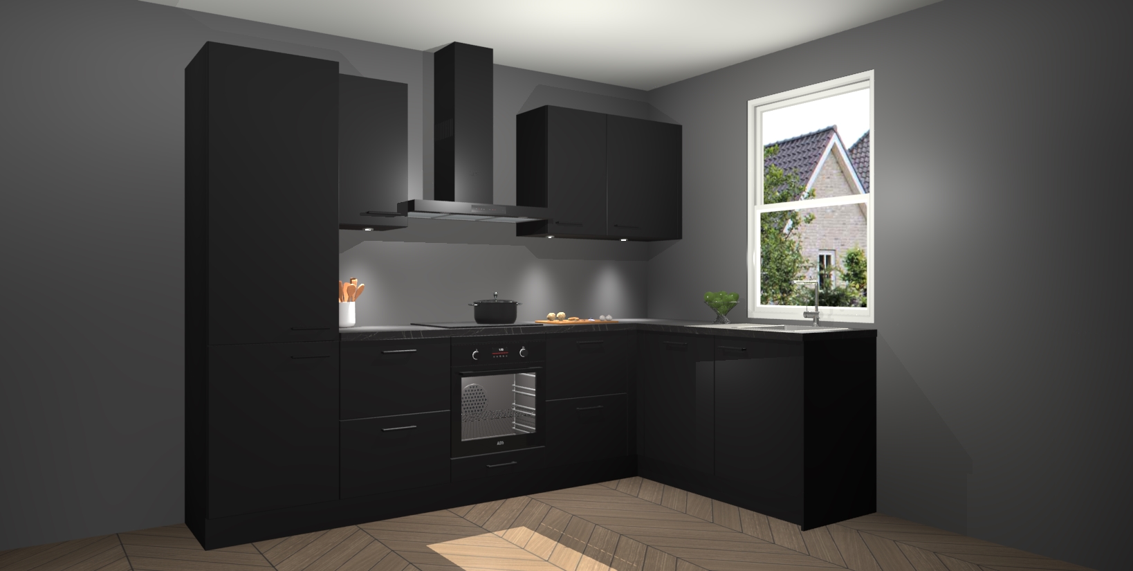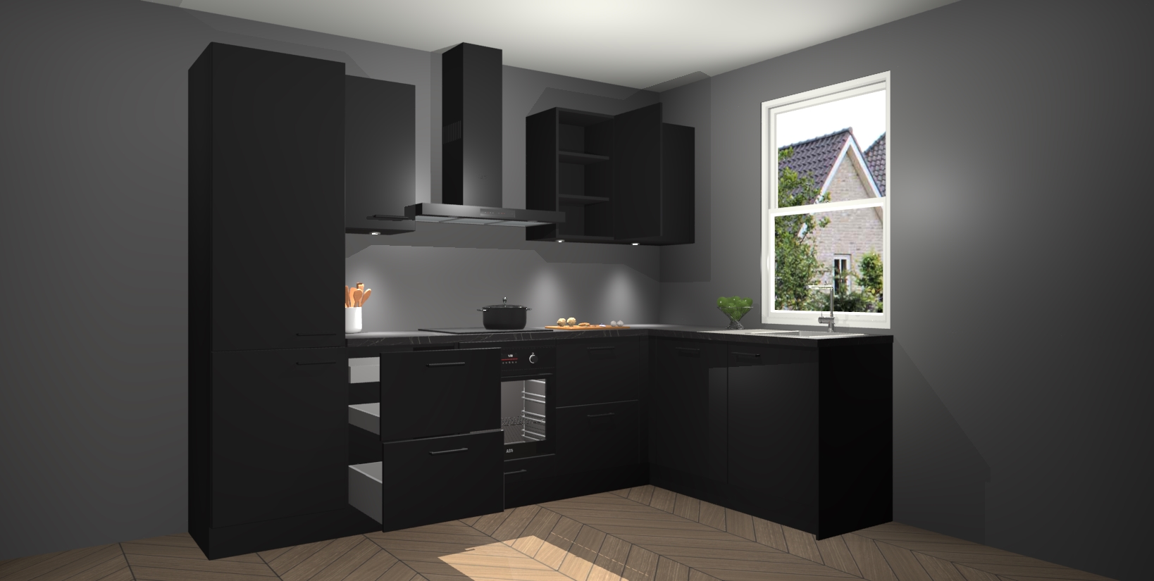 Maak kennis met de trendsettende en luxe Zwarte keuken Bazel! Deze uitzonderlijke keuken van Duitse kwaliteit is stijlvol, modern en perfect om elk huis mee op te fleuren. De binnenkant van de kasten worden meegenomen in een bijpassende kleur om een samenhangende eigentijdse esthetiek te voltooien. U zult dol zijn op hoe uw pas gerenoveerde keuken eruitziet met de Zwarte editie!