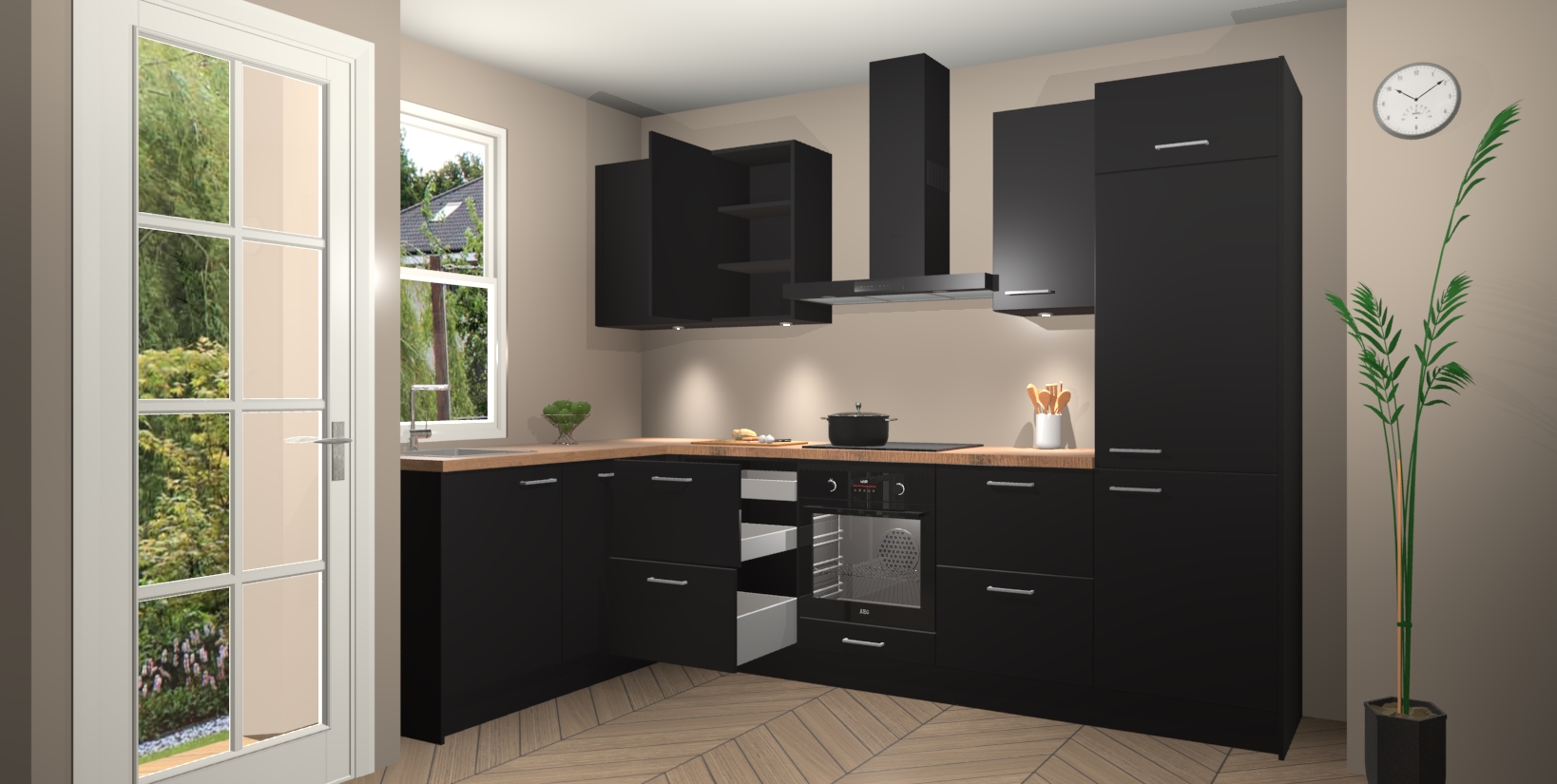 Inclusief plinten, stelpoten en werkblad