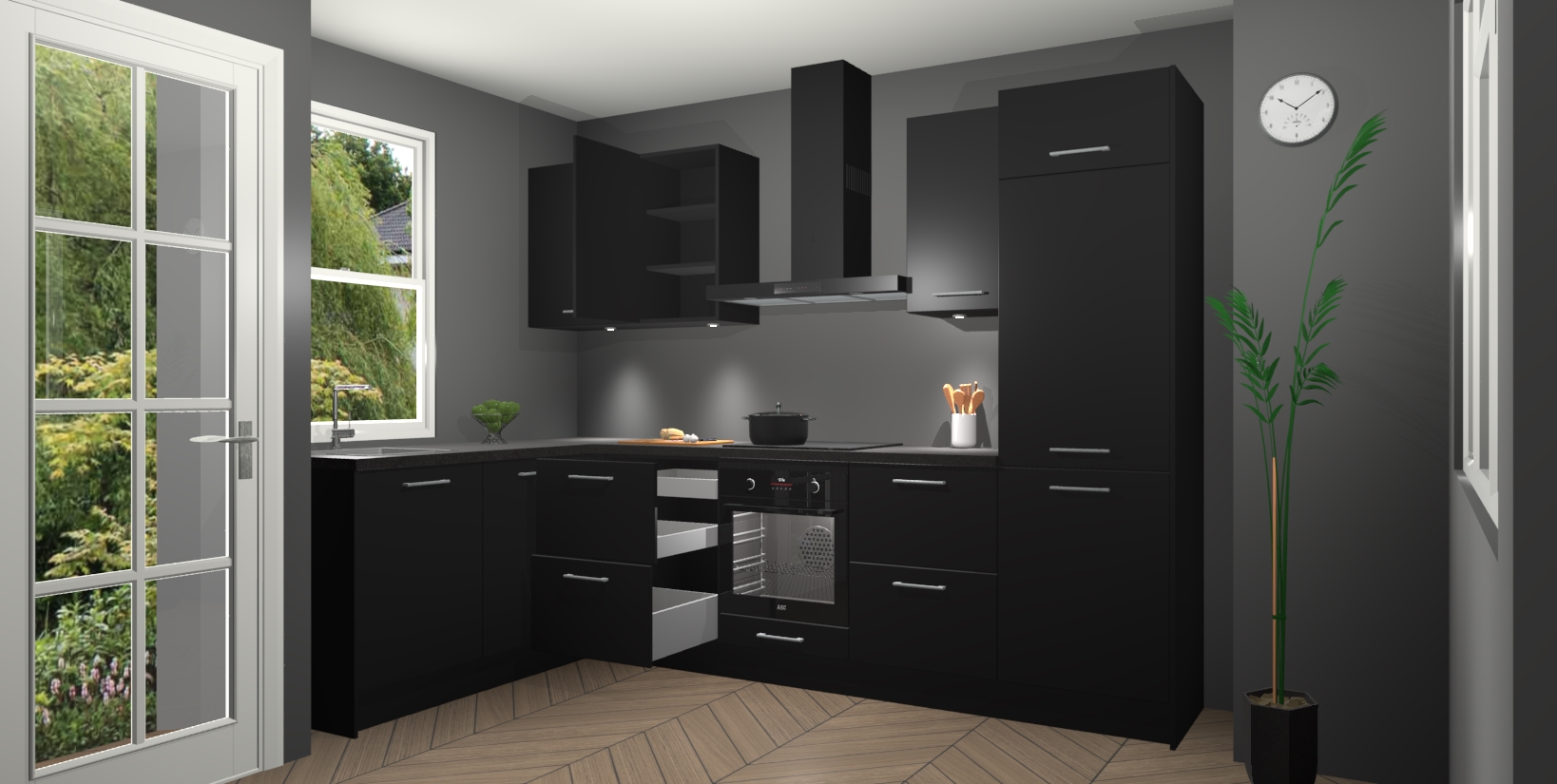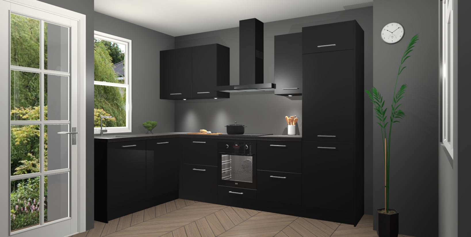 Bent u op zoek naar een strakke, moderne hoekkeuken die uw huis oppept en een moderne uitstraling geeft? Kijk dan niet verder dan de zwarte keuken Beijing. Deze verbluffende hoekkeuken tilt hedendaags design naar een hoger niveau. Qua stijl is deze chique hoekkeuken voorzien van zwarte accenten, om een strakke maar opvallende look te creëren. De binnenkant van de kasten is afgewerkt in dezelfde prachtige zwarte kleur voor extra esthetische aantrekkingskracht.