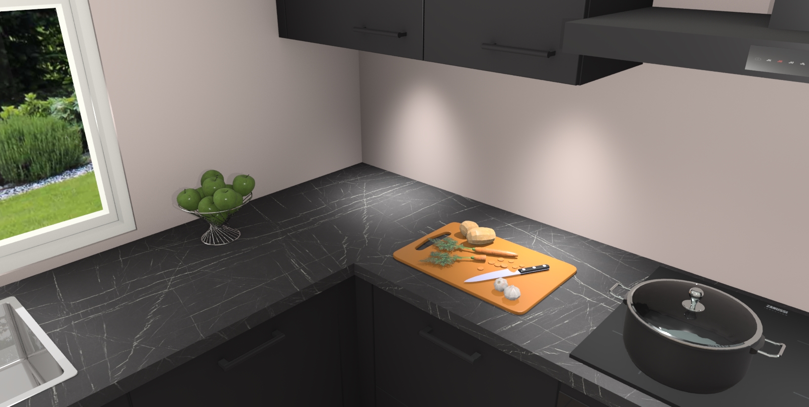 - Bij een hoekwerkblad zijn de hoeken in gevreesd en op maat gemaakt
