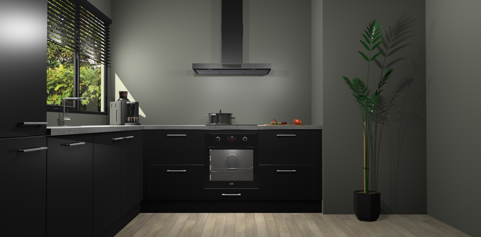 Met een modern, tijdloos design en ruime opslagruimte, zult u zich in no-time thuis voelen in uw nieuwe keuken. Uw leven wordt eenvoudiger met de soft-close deuren die voor het ultieme stille comfort zorgen - geen geluid dat u stoort terwijl u kookt. Ook is de keuken voorzien van 5 ingebouwde apparaten: een oven, inductie kookplaat, afzuigkap, vaatwasser en koelkast. Deze kunnen gemakkelijk na bestelling worden bijgewerkt naar AEG - waardoor uw luxe ervaring compleet is.