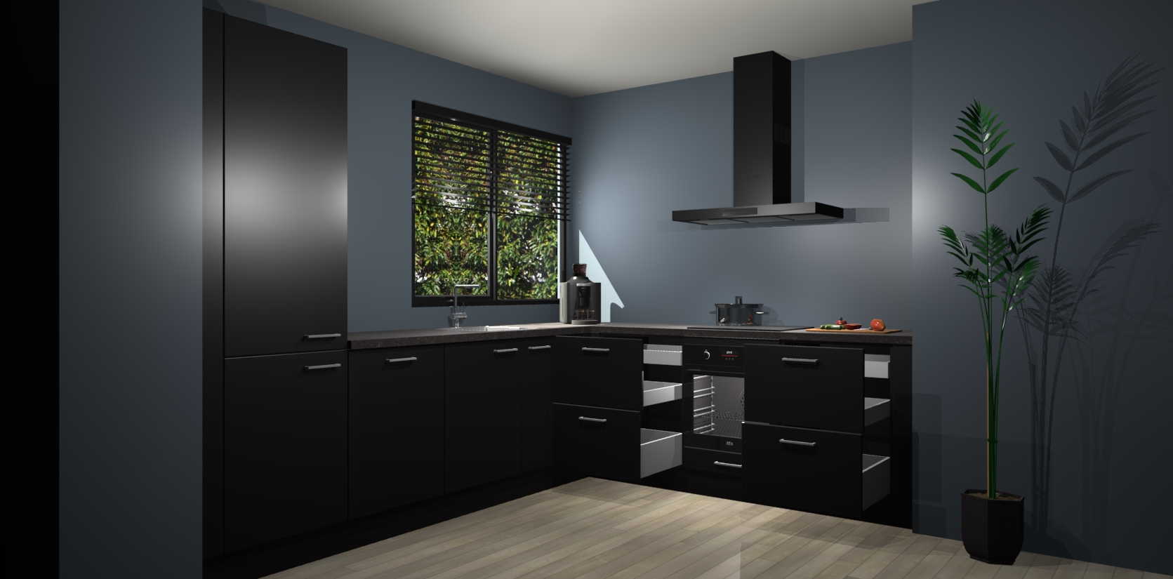 Wij presenteren de revolutie in keukens: de Zwarte keuken Benidorm. Met modern design, een tijdloos uiterlijk en kasten die al voor gemonteerd worden geleverd, laat deze stijlvolle keuken uw kookervaring op een hele nieuwe manier transformeren.