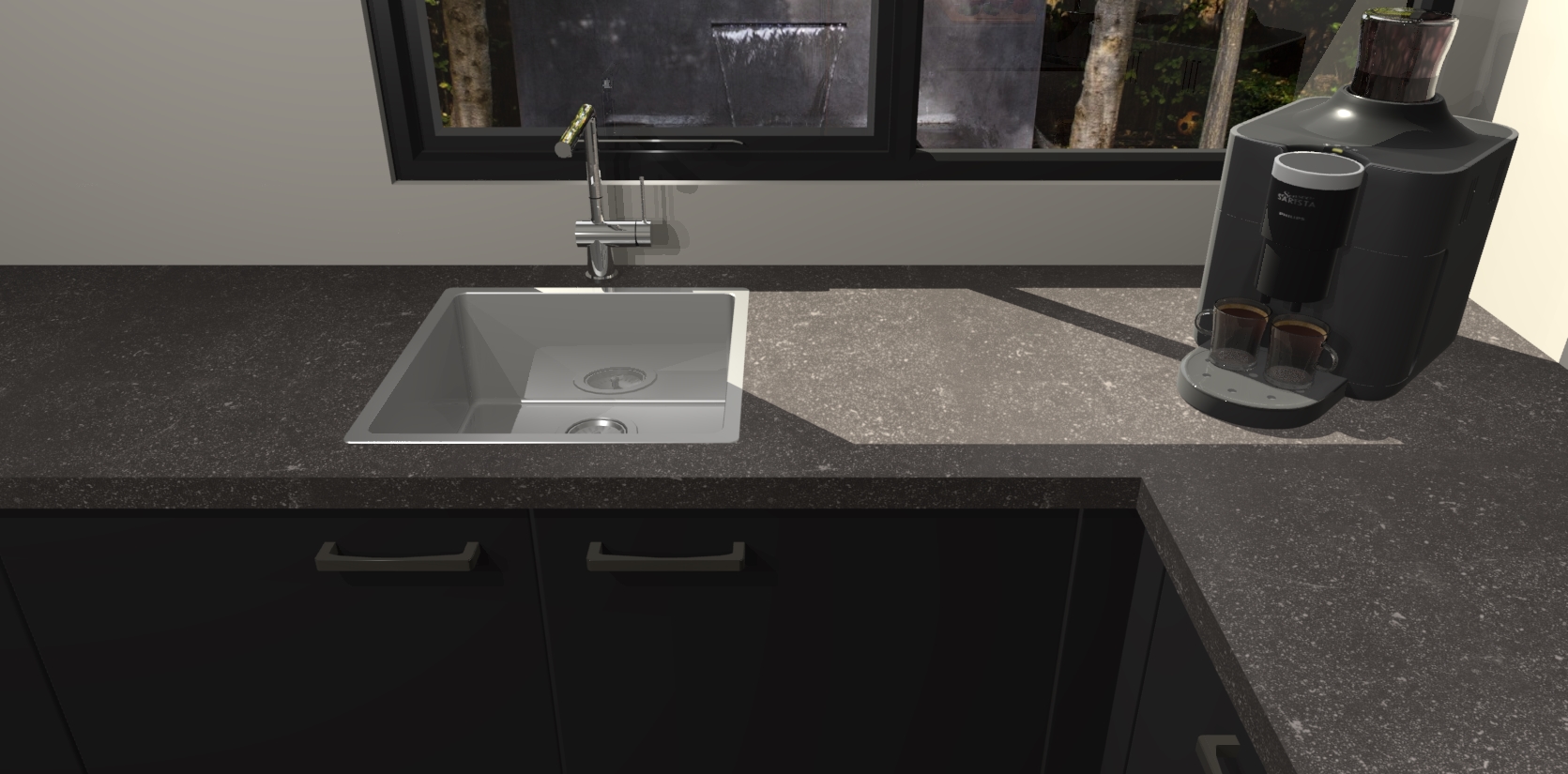 - Bij een hoekwerkblad zijn de hoeken in gevreesd en op maat gemaakt