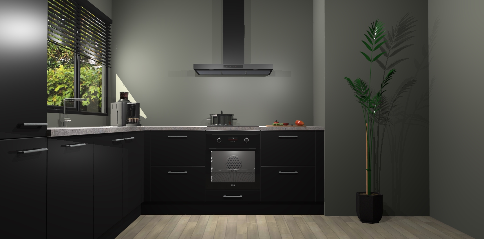 Met een modern, tijdloos design en ruime opslagruimte, zult u zich in no-time thuis voelen in uw nieuwe keuken. Uw leven wordt eenvoudiger met de soft-close deuren die voor het ultieme stille comfort zorgen - geen geluid dat u stoort terwijl u kookt. Ook is de keuken voorzien van 5 ingebouwde apparaten: een oven, inductie kookplaat, afzuigkap, vaatwasser en koelkast. Deze kunnen gemakkelijk na bestelling worden bijgewerkt naar AEG - waardoor uw luxe ervaring compleet is.