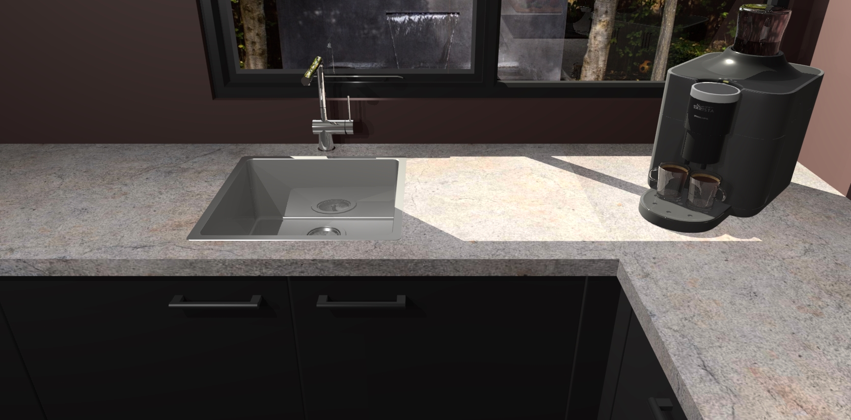 - De spoelbak is nog niet in gevreesd. Dit dient tijdens het werk gedaan te worden