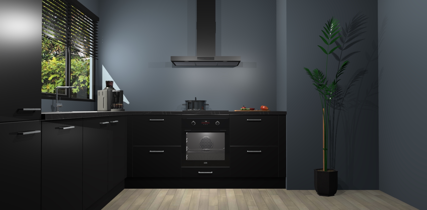 Met een modern, tijdloos design en ruime opslagruimte, zult u zich in no-time thuis voelen in uw nieuwe keuken. Uw leven wordt eenvoudiger met de soft-close deuren die voor het ultieme stille comfort zorgen - geen geluid dat u stoort terwijl u kookt. Ook is de keuken voorzien van 5 ingebouwde apparaten: een oven, inductie kookplaat, afzuigkap, vaatwasser en koelkast. Deze kunnen gemakkelijk na bestelling worden bijgewerkt naar AEG - waardoor uw luxe ervaring compleet is.