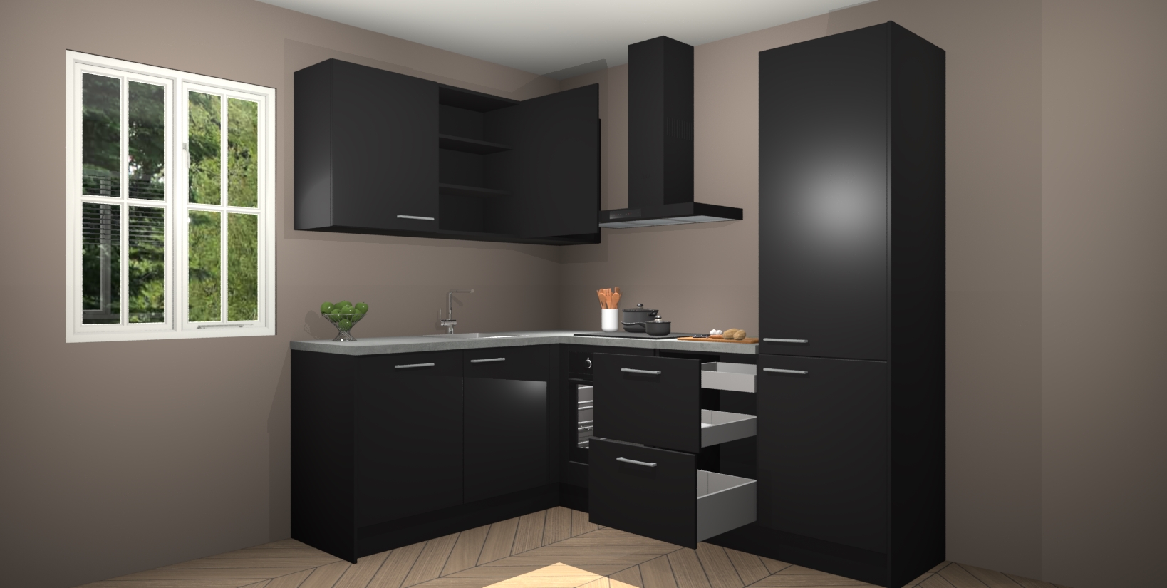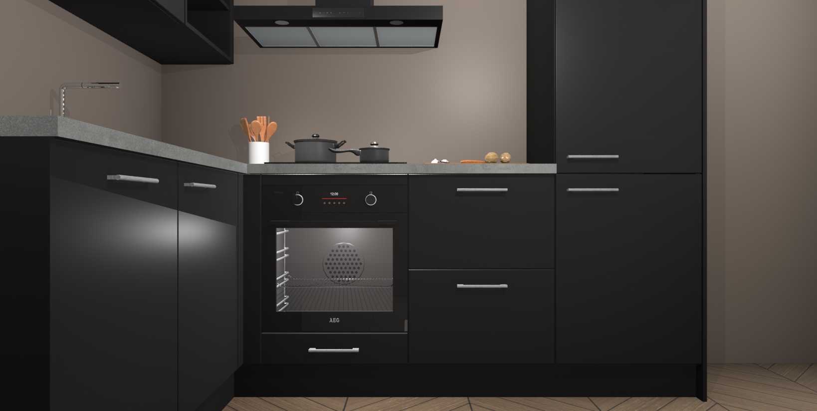 Maak kennis met de Zwarte keuken Boekarest, een moderne hoekkeuken waar al uw vrienden en familie jaloers op zullen zijn! Het verbluffende mooie ontwerp past in elk interieur en is een ideale keuze voor wie op zoek is naar een klassieke, maar verfijnde look.