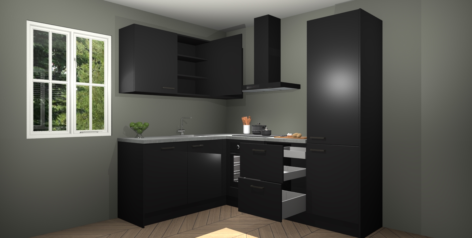 Maak kennis met de Zwarte keuken Boekarest, een moderne hoekkeuken waar al uw vrienden en familie jaloers op zullen zijn! Het verbluffende mooie ontwerp past in elk interieur en is een ideale keuze voor wie op zoek is naar een klassieke, maar verfijnde look.