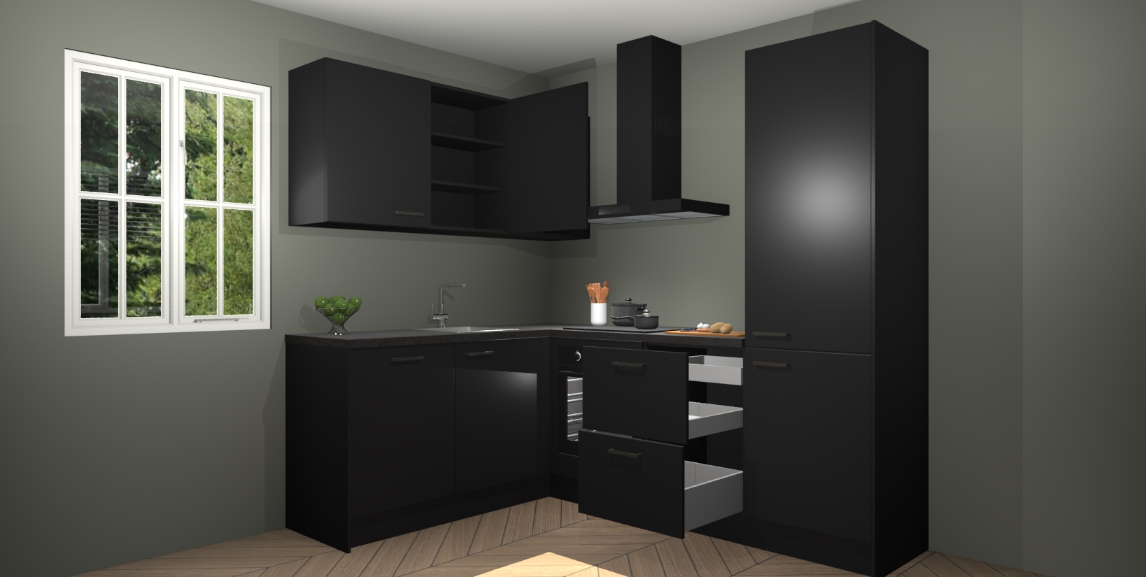 Maak kennis met de Zwarte keuken Boekarest, een moderne hoekkeuken waar al uw vrienden en familie jaloers op zullen zijn! Het verbluffende mooie ontwerp past in elk interieur en is een ideale keuze voor wie op zoek is naar een klassieke, maar verfijnde look.