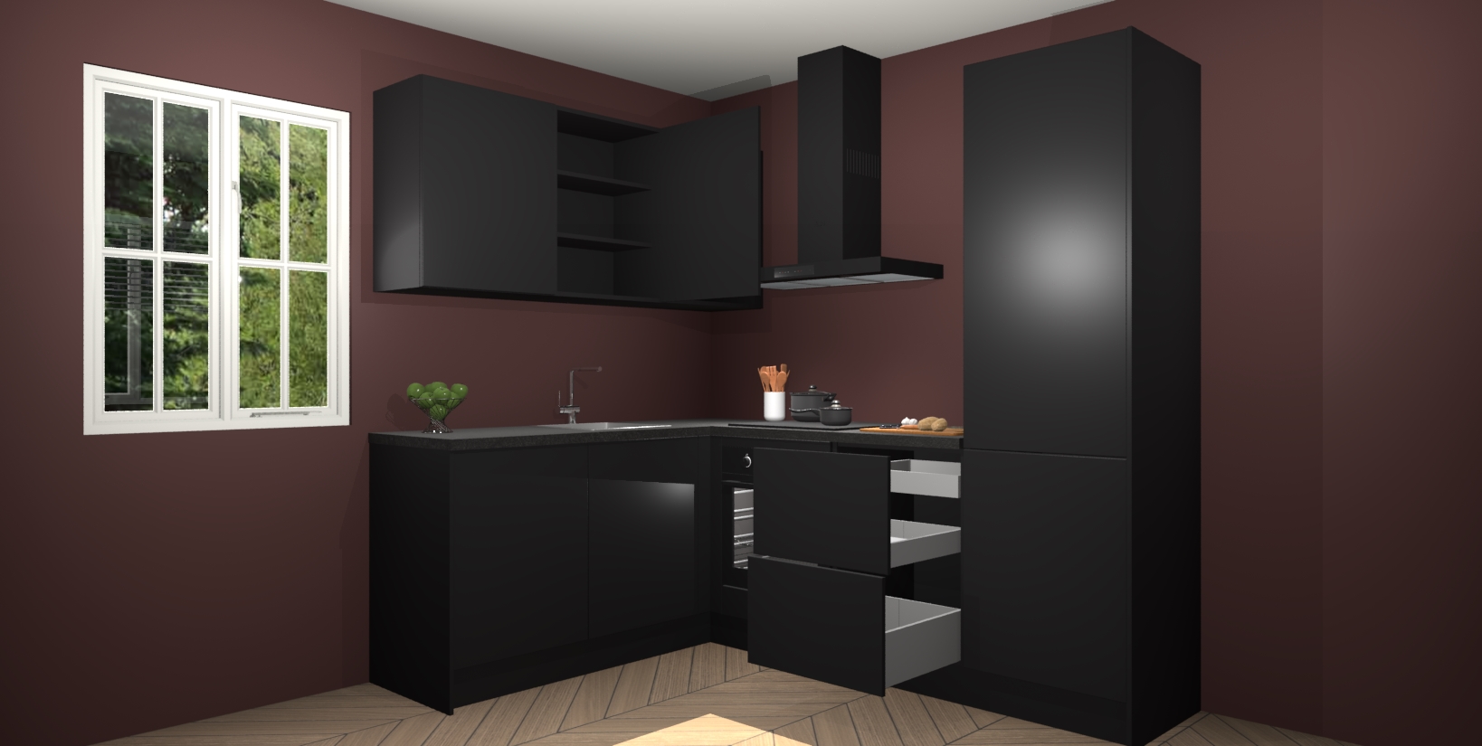 Maak kennis met de Zwarte keuken Boekarest, een moderne hoekkeuken waar al uw vrienden en familie jaloers op zullen zijn! Het verbluffende mooie ontwerp past in elk interieur en is een ideale keuze voor wie op zoek is naar een klassieke, maar verfijnde look.