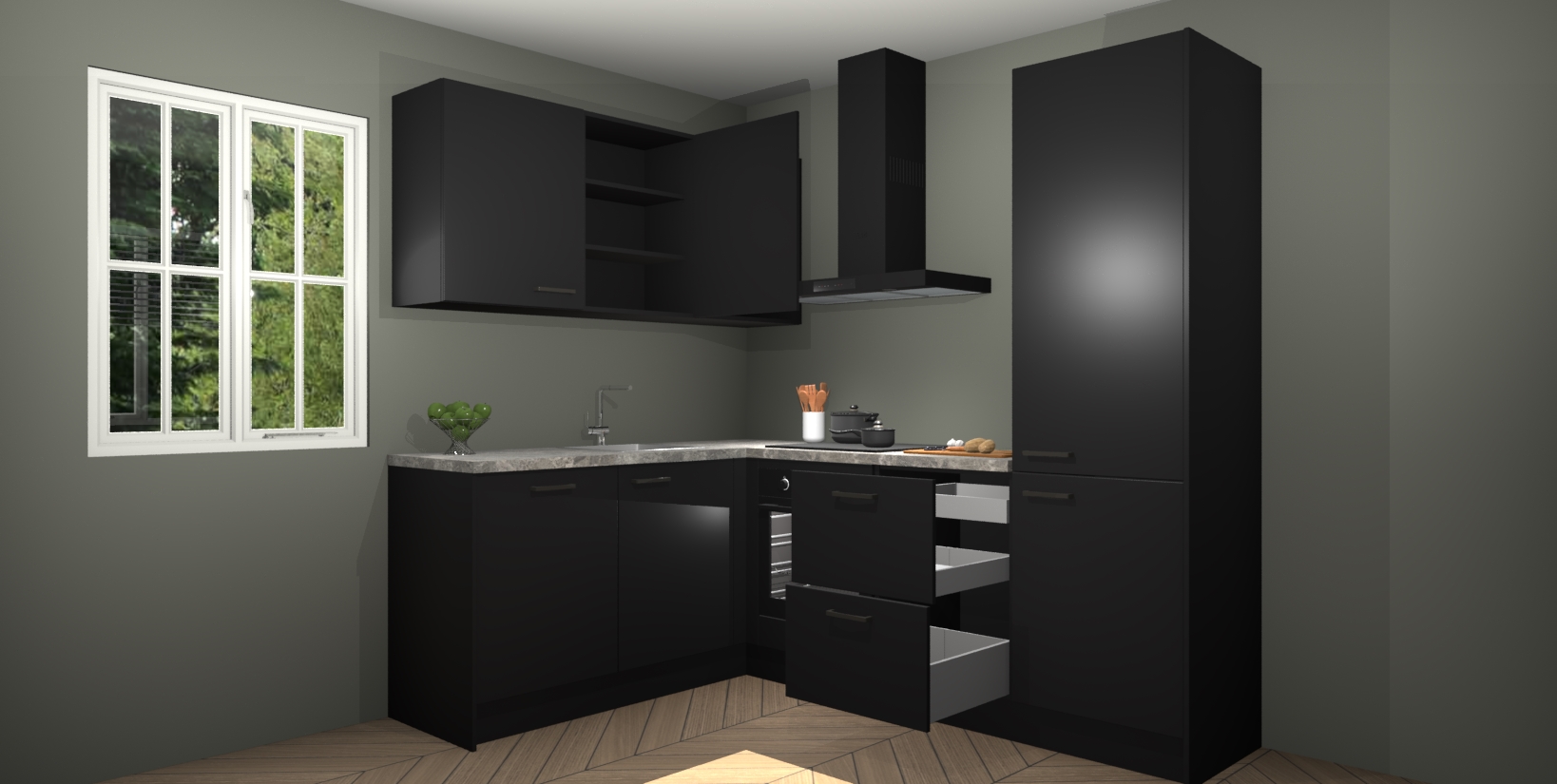 Maak kennis met de Zwarte keuken Boekarest, een moderne hoekkeuken waar al uw vrienden en familie jaloers op zullen zijn! Het verbluffende mooie ontwerp past in elk interieur en is een ideale keuze voor wie op zoek is naar een klassieke, maar verfijnde look.