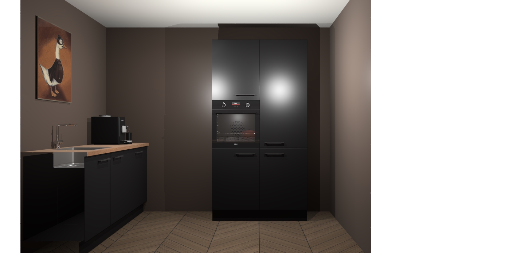 Met een modern, tijdloos design en ruime opslagruimte, zult u zich in no-time thuis voelen in uw nieuwe keuken. Uw leven wordt eenvoudiger met de soft-close deuren die voor het ultieme stille comfort zorgen - geen geluid dat u stoort terwijl u kookt. Ook is de keuken voorzien van 5 ingebouwde apparaten: een oven, inductie kookplaat, afzuigkap, vaatwasser en koelkast. Deze kunnen gemakkelijk na bestelling worden bijgewerkt naar AEG - waardoor uw luxe ervaring compleet is.
