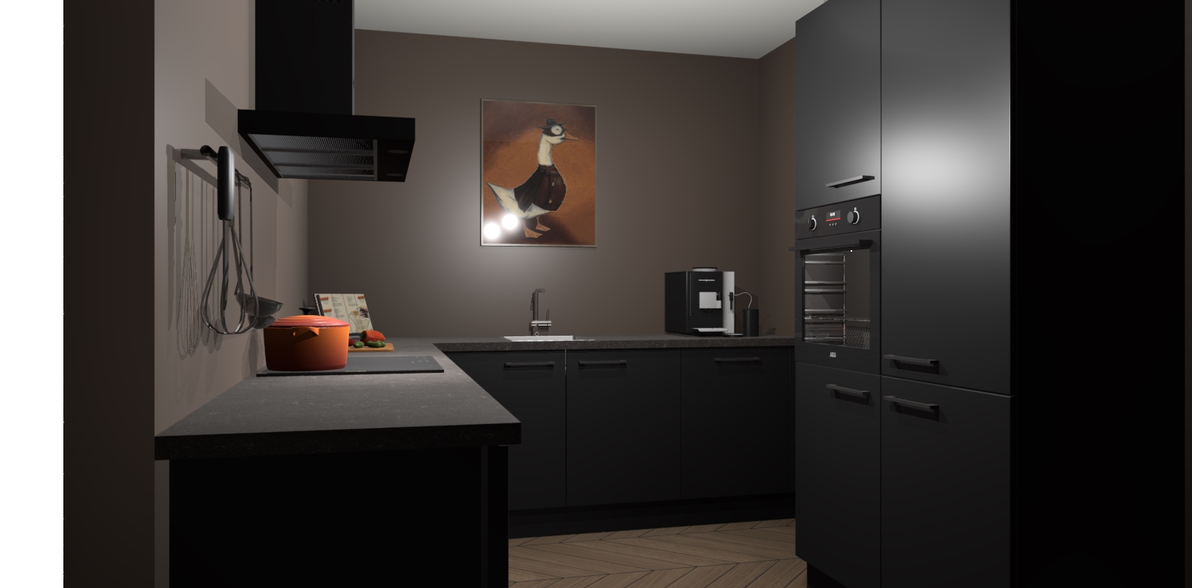 Met een modern, tijdloos design en ruime opslagruimte, zult u zich in no-time thuis voelen in uw nieuwe keuken. Uw leven wordt eenvoudiger met de soft-close deuren die voor het ultieme stille comfort zorgen - geen geluid dat u stoort terwijl u kookt. Ook is de keuken voorzien van 5 ingebouwde apparaten: een oven, inductie kookplaat, afzuigkap, vaatwasser en koelkast. Deze kunnen gemakkelijk na bestelling worden bijgewerkt naar AEG - waardoor uw luxe ervaring compleet is.