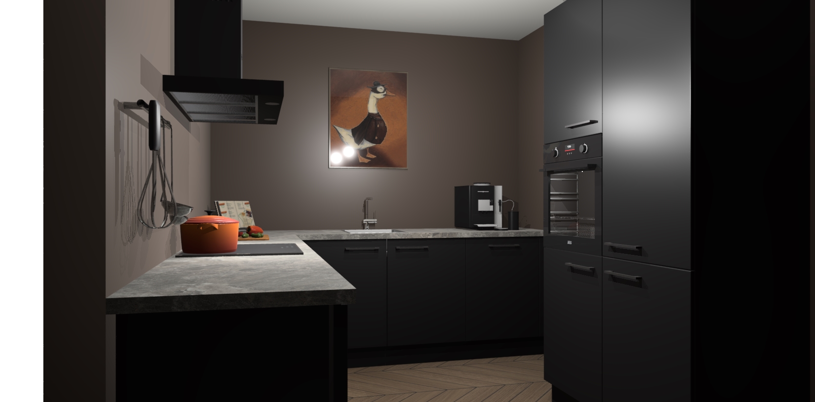 Met een modern, tijdloos design en ruime opslagruimte, zult u zich in no-time thuis voelen in uw nieuwe keuken. Uw leven wordt eenvoudiger met de soft-close deuren die voor het ultieme stille comfort zorgen - geen geluid dat u stoort terwijl u kookt. Ook is de keuken voorzien van 5 ingebouwde apparaten: een oven, inductie kookplaat, afzuigkap, vaatwasser en koelkast. Deze kunnen gemakkelijk na bestelling worden bijgewerkt naar AEG - waardoor uw luxe ervaring compleet is.