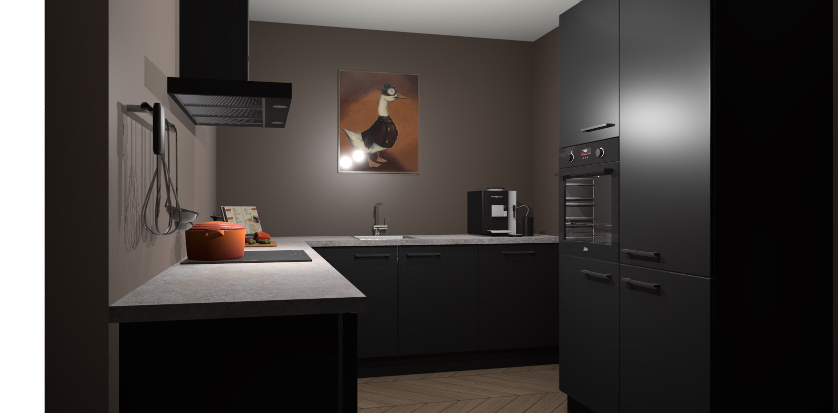 Met een modern, tijdloos design en ruime opslagruimte, zult u zich in no-time thuis voelen in uw nieuwe keuken. Uw leven wordt eenvoudiger met de soft-close deuren die voor het ultieme stille comfort zorgen - geen geluid dat u stoort terwijl u kookt. Ook is de keuken voorzien van 5 ingebouwde apparaten: een oven, inductie kookplaat, afzuigkap, vaatwasser en koelkast. Deze kunnen gemakkelijk na bestelling worden bijgewerkt naar AEG - waardoor uw luxe ervaring compleet is.