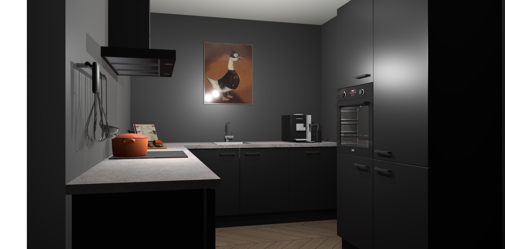 Met een modern, tijdloos design en ruime opslagruimte, zult u zich in no-time thuis voelen in uw nieuwe keuken. Uw leven wordt eenvoudiger met de soft-close deuren die voor het ultieme stille comfort zorgen - geen geluid dat u stoort terwijl u kookt. Ook is de keuken voorzien van 5 ingebouwde apparaten: een oven, inductie kookplaat, afzuigkap, vaatwasser en koelkast. Deze kunnen gemakkelijk na bestelling worden bijgewerkt naar AEG - waardoor uw luxe ervaring compleet is.