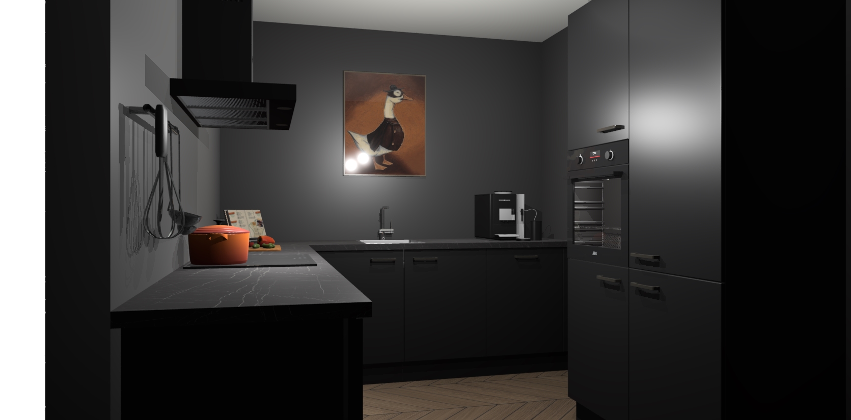 Met een modern, tijdloos design en ruime opslagruimte, zult u zich in no-time thuis voelen in uw nieuwe keuken. Uw leven wordt eenvoudiger met de soft-close deuren die voor het ultieme stille comfort zorgen - geen geluid dat u stoort terwijl u kookt. Ook is de keuken voorzien van 5 ingebouwde apparaten: een oven, inductie kookplaat, afzuigkap, vaatwasser en koelkast. Deze kunnen gemakkelijk na bestelling worden bijgewerkt naar AEG - waardoor uw luxe ervaring compleet is.