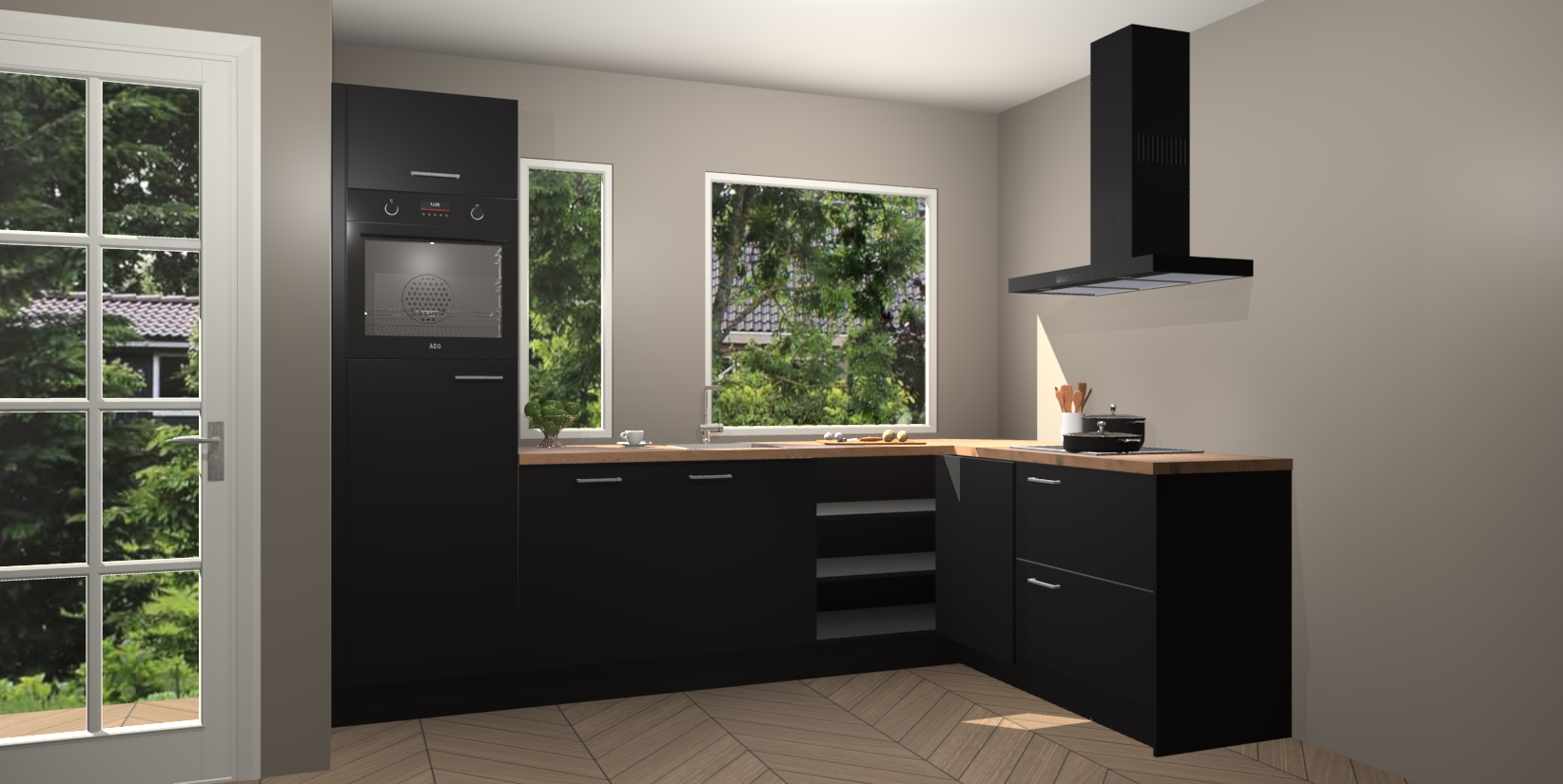 De zwarte keuken Cannes - de perfecte hoekkeuken voor elke ruimte! Onze combinatie van modern, tijdloos design en betrouwbare Duitse kwaliteit gecombineerd met een onverslaanbare prijs maken deze keuken een geweldige manier om uw huis te verbeteren en stijl toe te voegen.