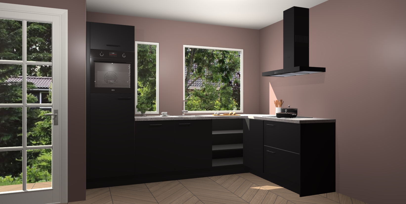 Deze complete keuken wordt geleverd met 5 inbouwapparaten: een oven, inductiekookplaat, afzuigkap, vaatwasser en koelkast. De toestellen kunnen na bestelling ook gemakkelijk worden opgewaardeerd naar AEG. Bovendien is elke deur in deze keuken voorzien van handige softclose technologie voor eenvoudig gebruik! Als een leuke toevoeging zit in deze keuken ook een carrousel, zo hoef je niet meer de hoek in duiken om iets te pakken.