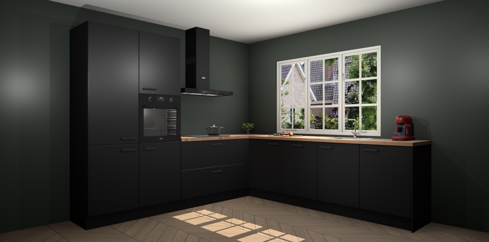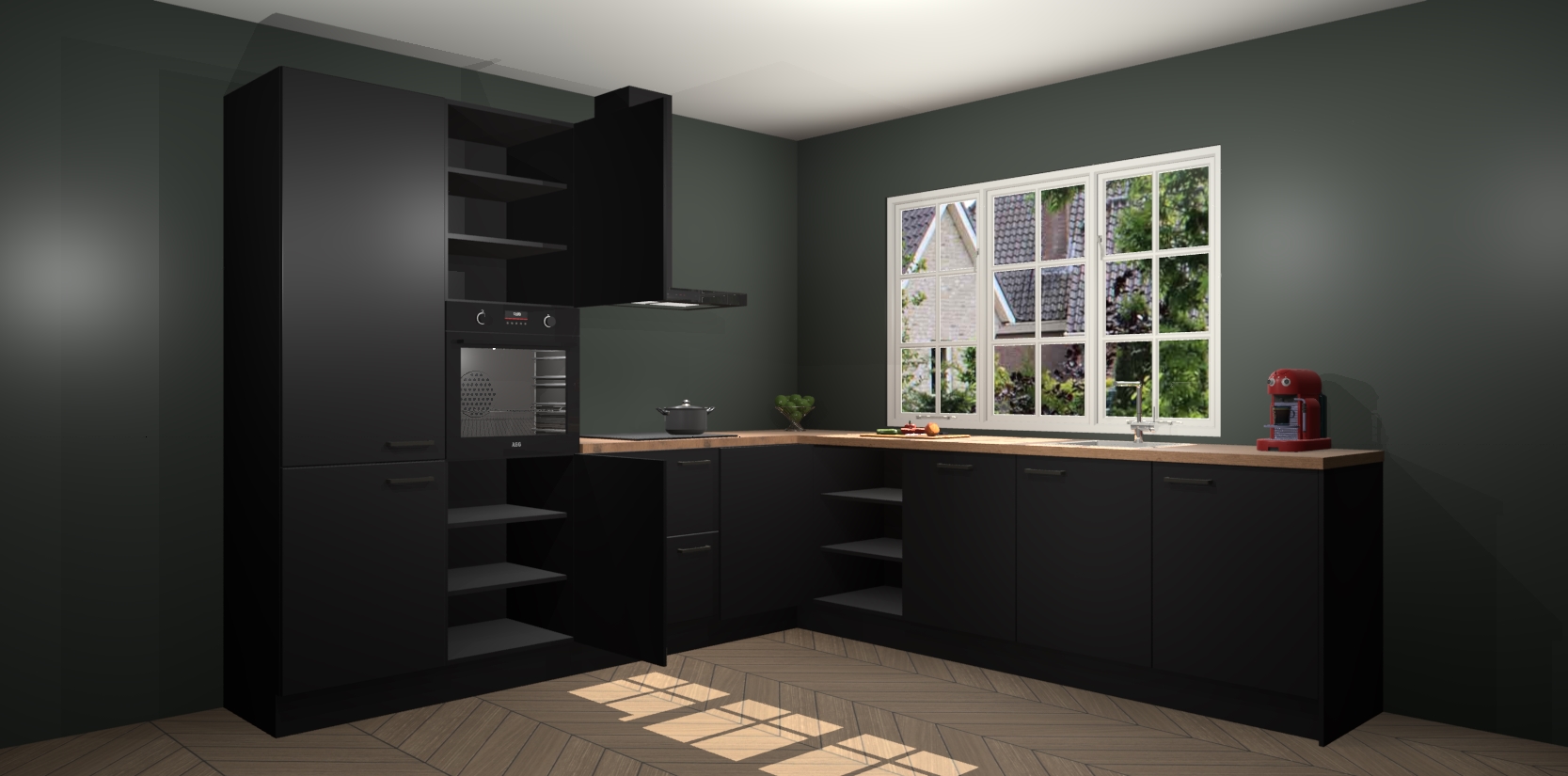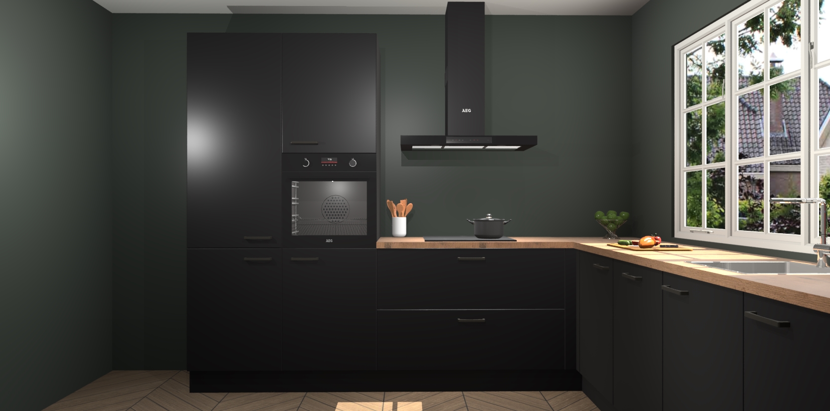 De keuken heeft veel opbergruimte, waardoor u alle ingrediënten gemakkelijk bereikbaar hebt staan. En daarnaast bevat deze volledig uitgeruste keuken ook 5 ingebouwde apparaten: een oven, inductiekookplaat, afzuigkap, vaatwasser en koelkast. Deze zijn heel eenvoudig na bestellen te upgraden naar AEG als u dit wilt. Bovendien zijn de softclose-kastdeuren ideaal; geef ze gewoon even een tikje en ze sluiten automatisch met geruisloze precisie.
