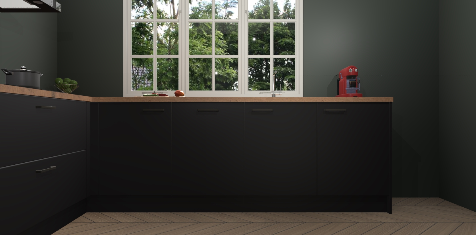 Welkom in de nieuwe wereld van een moderne keuken: de Zwarte keuken Casablanca! Met dit innovatieve keukendesign haalt u de natuur naar binnen. Neem plaats aan uw hout-look keuken en voel u verbonden met de prachtige Zwarte kleur. Zeer gebruiksvriendelijk, ervaring door prettige materialen en kleur die perfect aansluiten bij uw sfeerkeuze in huis.
